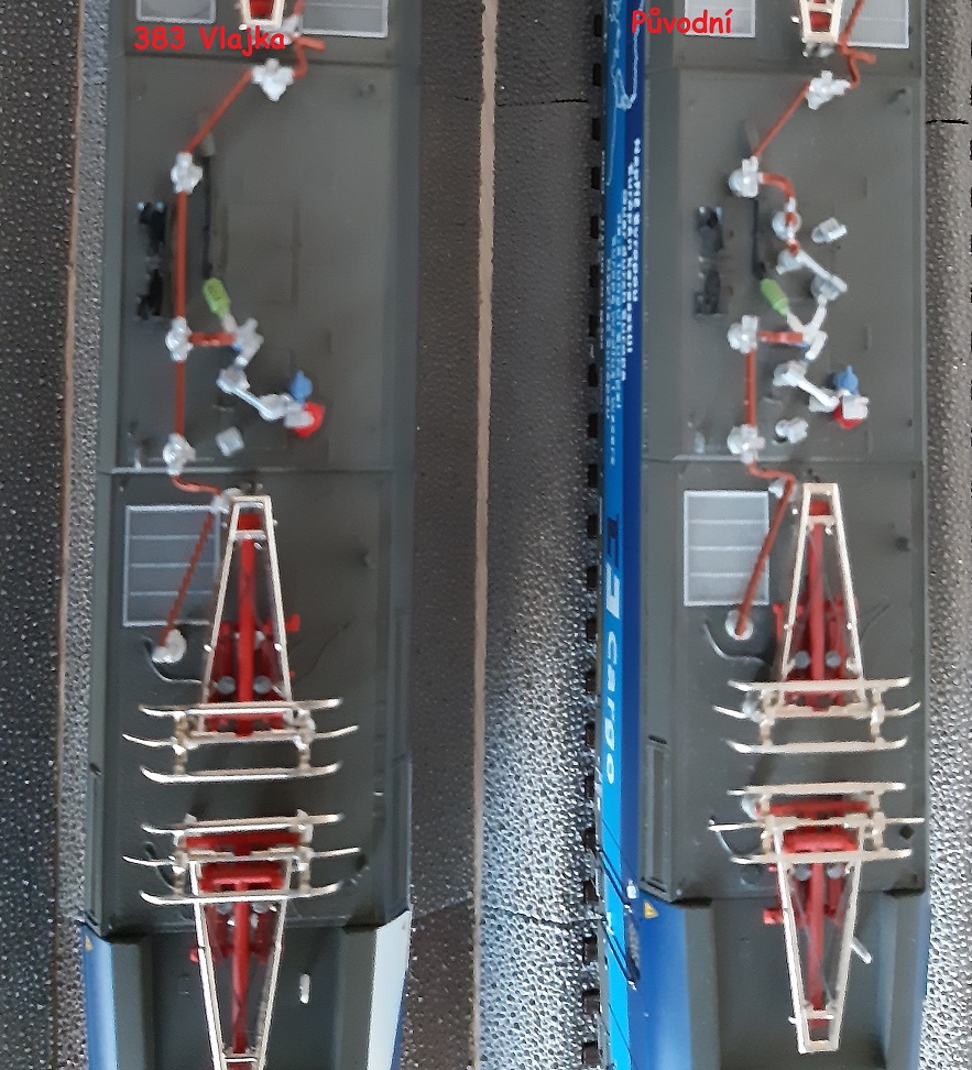 Dnes mi došel Vectron ČDC s vlajkou (383 009-8). Jelikož mám již první verzi (383 003-1). Tak jsem zjistil, že modely mají jinak řešeny izolátory a odpojovače na střeše.