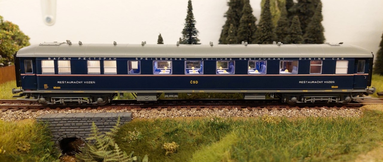 Já jsem to nakonec osvětlil ESU DCC teplá bílá. Jednu poslední LED jsem uříznul a koncová světla odpájel. Vyšlo to akorát, pouze jsem musel napájet drátky k připravenému vývodu pro originální osvětlení, které se tam dá předpokládám pouze nacvaknout. Výsledek je následující: