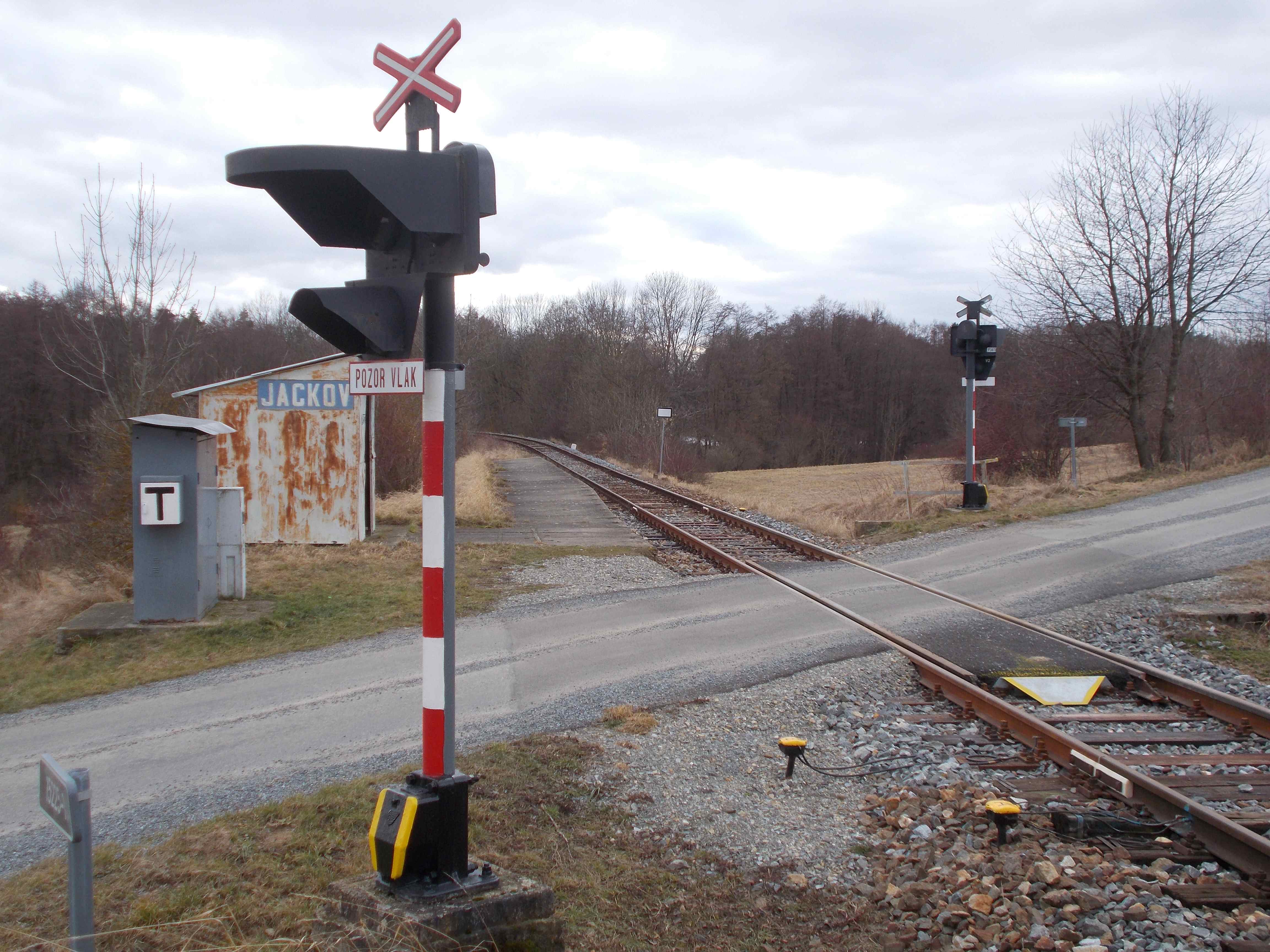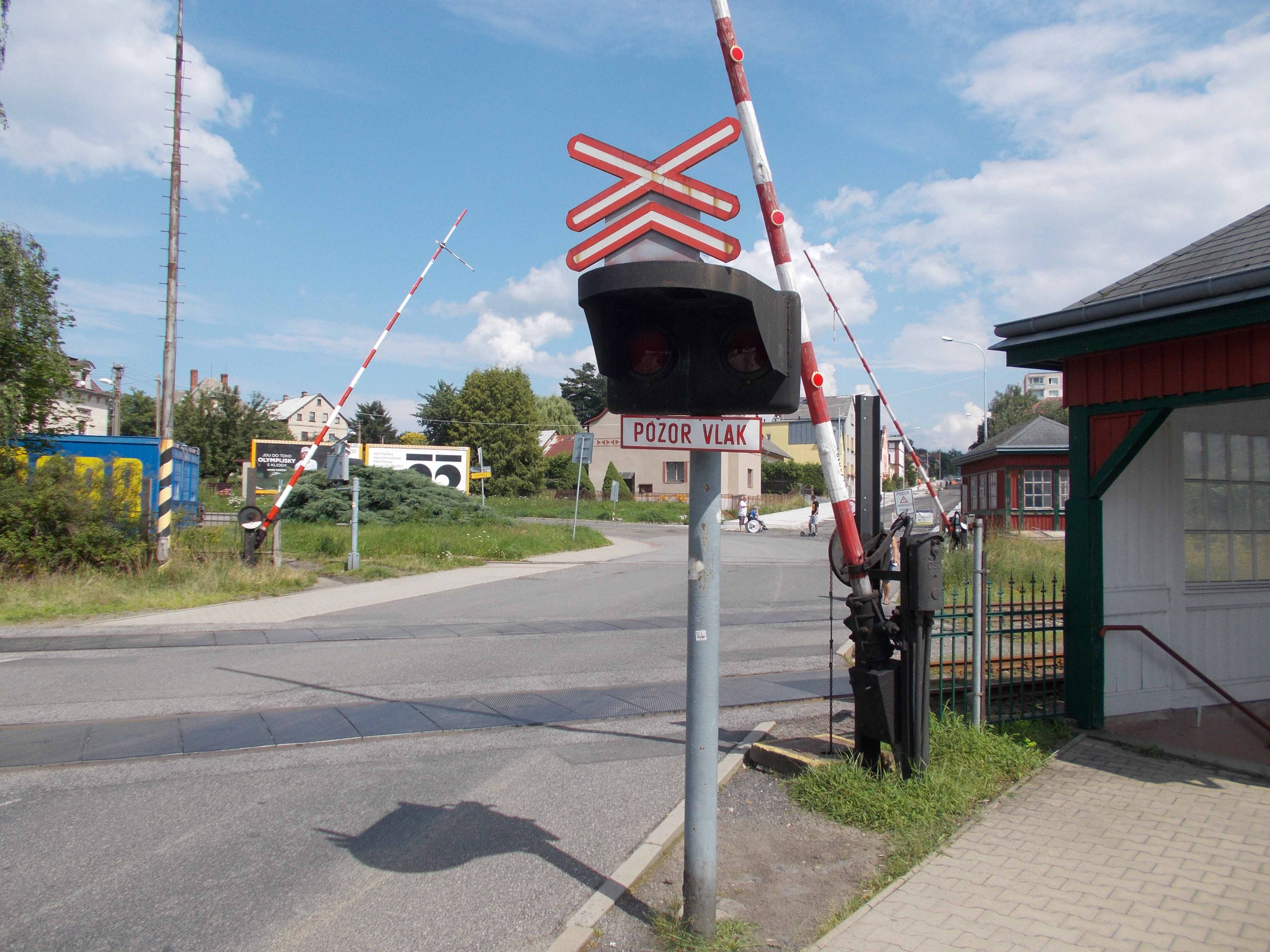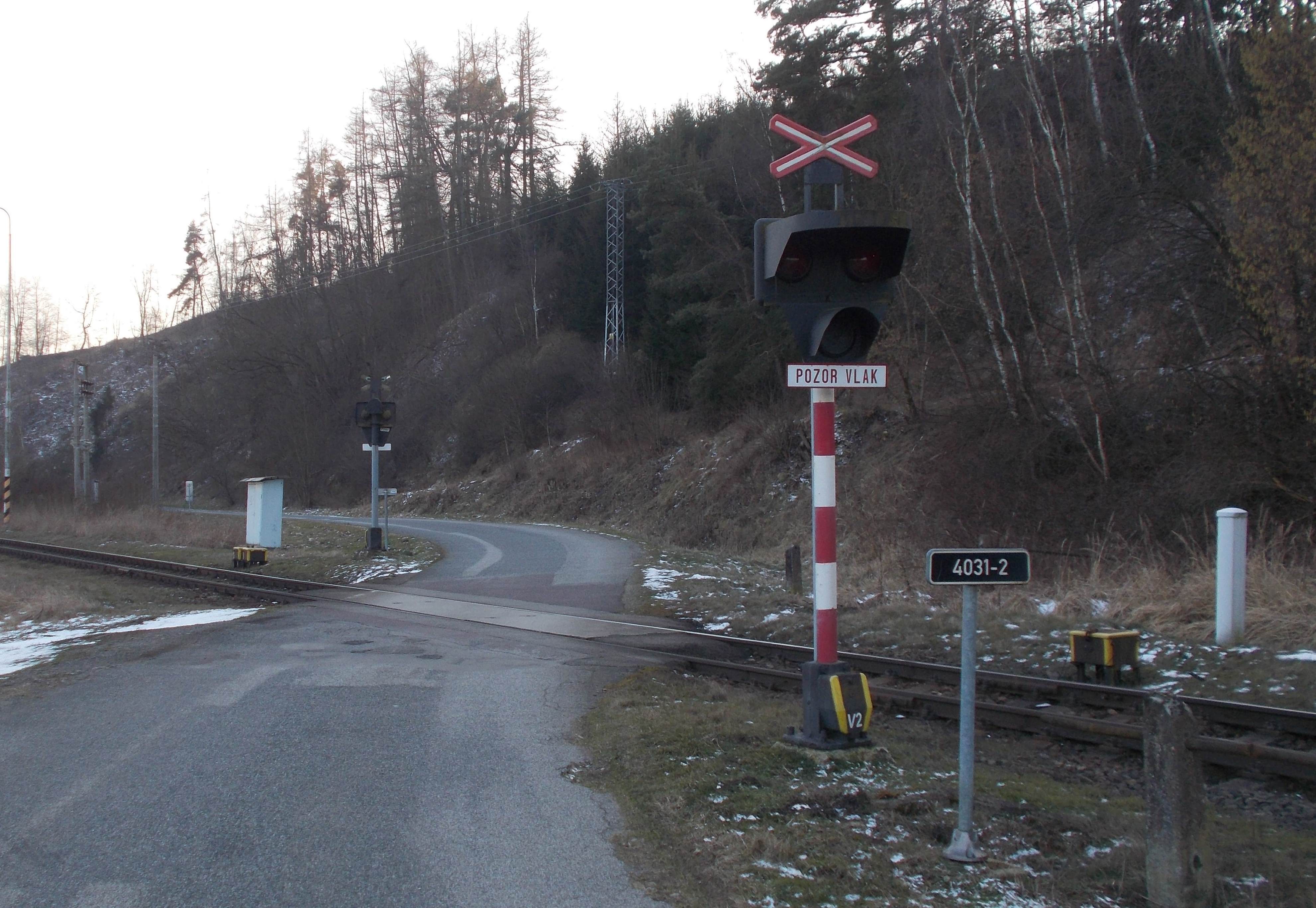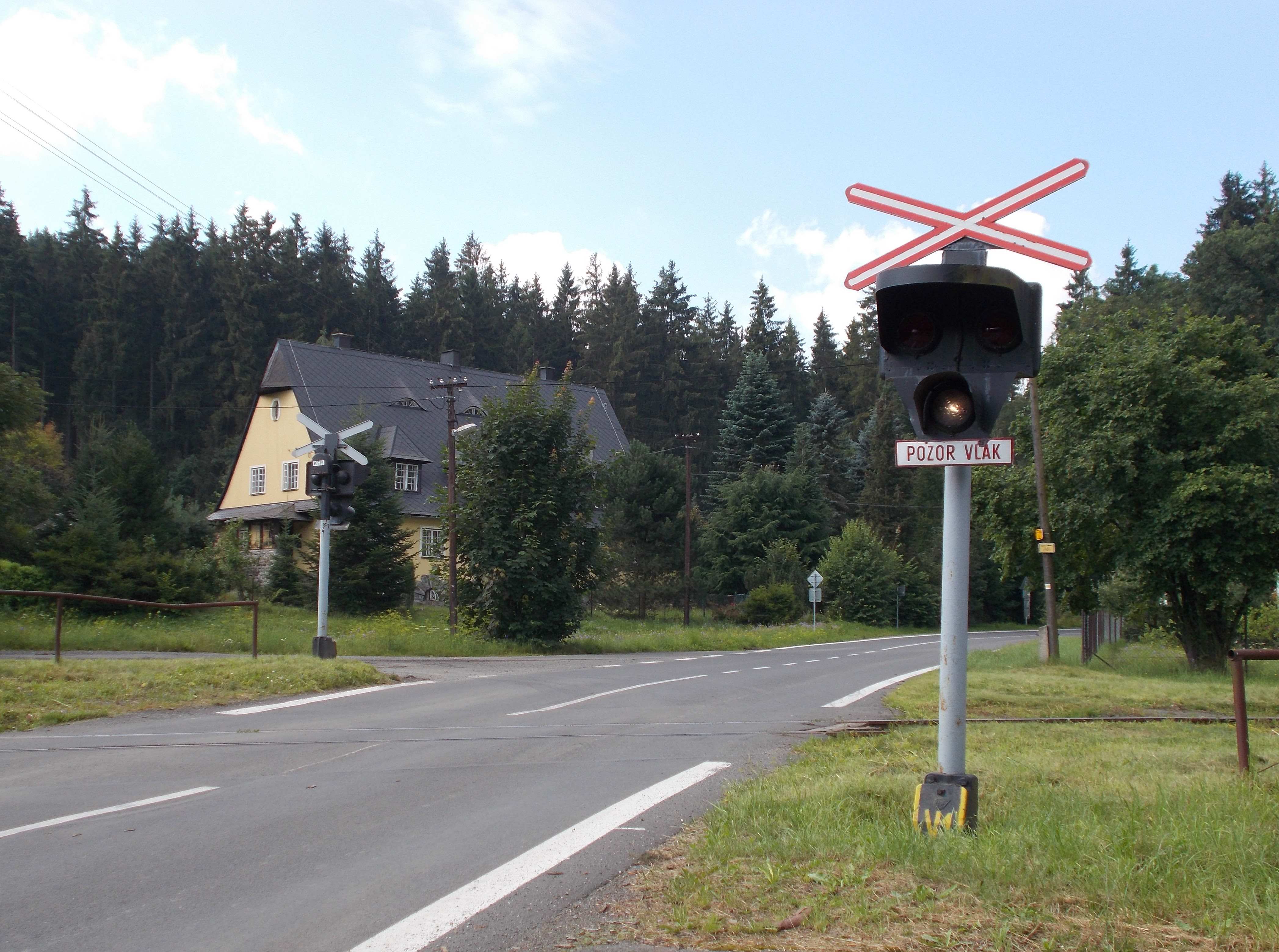 Pokud to někoho zajímá, tak na první fotce je přejezd v Bransouzích a na druhé v Karlovicích, liší se nátěrem sloupku a odlišným provedením výstražného kříže .