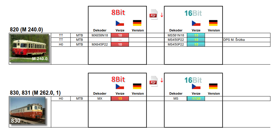 Druhá věc je tabulka s projekty a návody. No bohužel, obsahuje to několik tisíc odkazů a všechno se musí vměstnat na šířku monitoru, takže pod obrázkem je odkaz na návod (pokud existuje), zároveň je barvou obrázku a písma řečeno o jakou verzi projektu jde, což je podstatnější než podtržení malého čísla mezi linkami tabulky. A opět je tam obrázek pdf a šipka dolů. Kdo tohle nepochopí, najde to přes stránku Návody, jsou k tomu nejméně tři cesty.