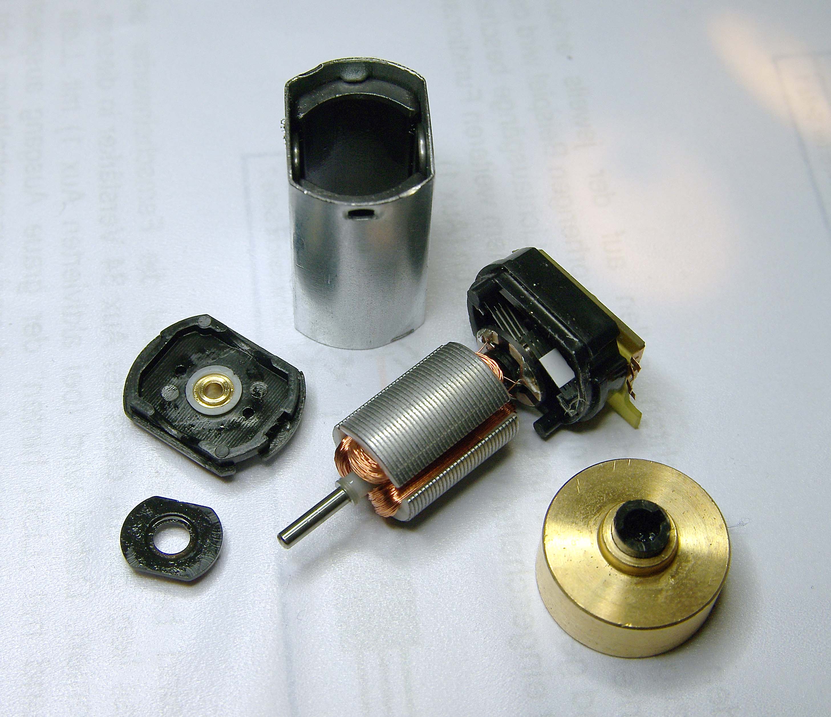 Mikinko vystihol si to úplne presne, toto je okopírovaný motor Gutzold! 3-pólový, s rovnou kotvou, plastovými uloženiami na oboch koncoch. Možno trocha si vzali inšpirácie od malých Mashím, kde spravili inak komutátor a uhlíky ale inak je to jeden veľký odpad!