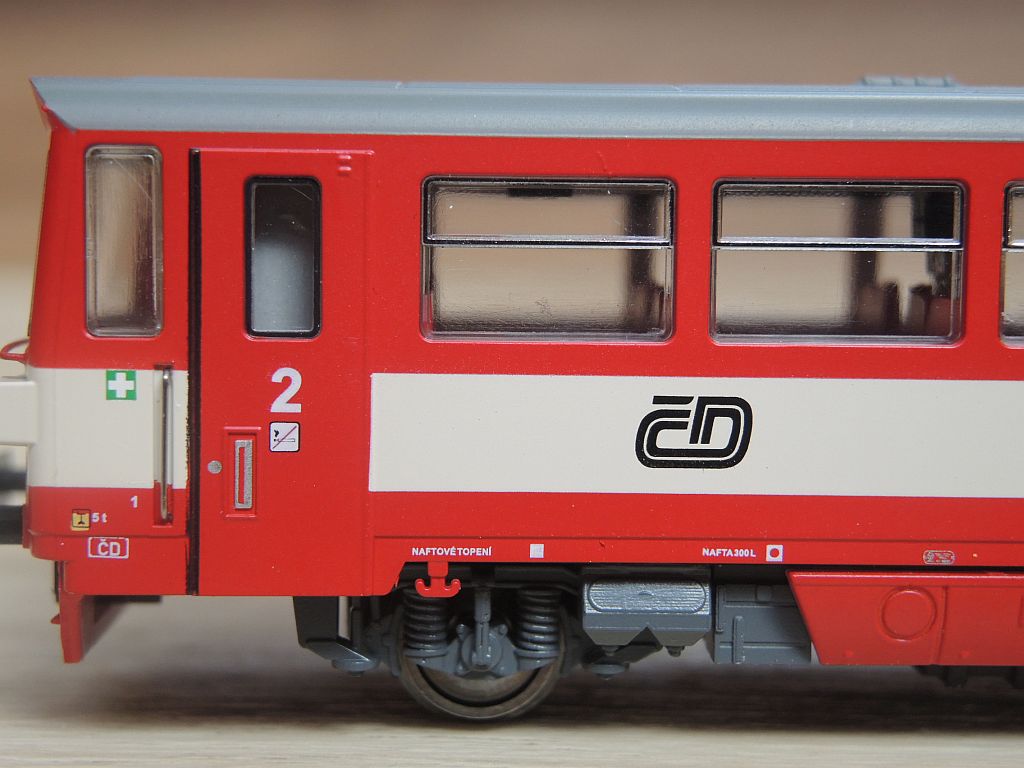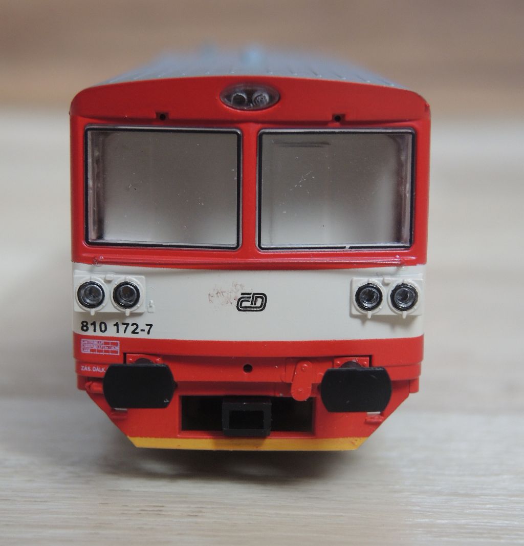 Ta velká mezera mezi krytem motoru a skříní je vidět i na snímku pana Daleckého, takže to asi nebude jen na jednom kusu. Co je příčinou ? Bíle vypadající interiér kabiny nepůsobí vůbec dobře, bude se muset určitě nabarvit. Světlešedá závaží v chodbičkách - to taky není moc dobrý nápad, lepší by byla možná matná černá. Hezky vypadá zpracování světel a povrchovka. Rozdílná velikost a zaoblení čelních i bočních rohů oken ? To už se tady probíralo ..... No, na první pohled ten model nevypadá zle, ale dokonalý nebude...