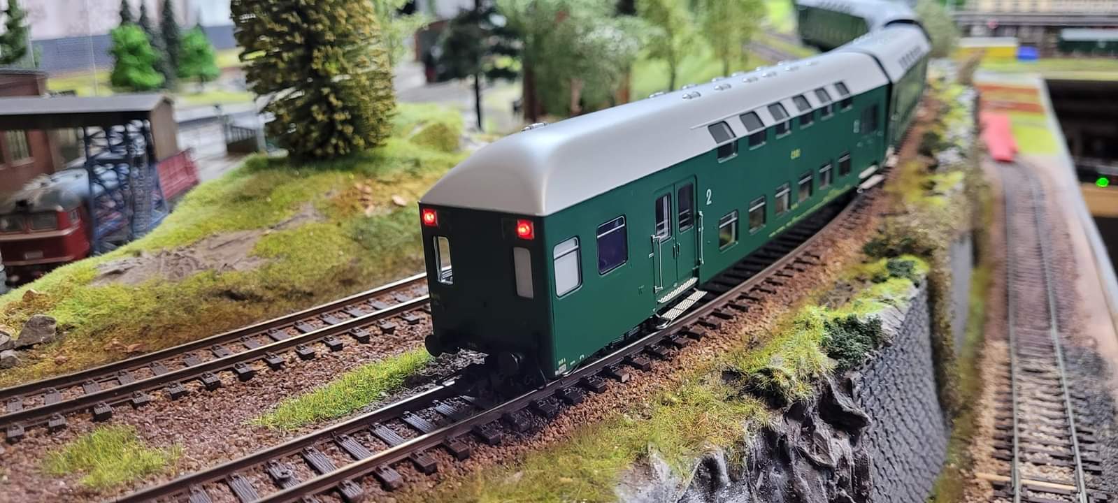Vozy mám doma, vyzkoušené všemi směry, sólo i dvojmo, jako první i druhé ve vlaku. Vše ok. Poloměry oblouků na modulech 600 mm. V digitálním provozu pochopitelně svítí oba konce a dost hřejí. S dekodérem nevím, ale nebudu instalovat. Propojky jsem už odstranil. Pozor při rozebírání na schody, spodní schod je lept. Karosérii nejdříve roztáhnout pomocí kulatých párátek od třínápravového podvozku a pak vpředu. Potom použít návod.