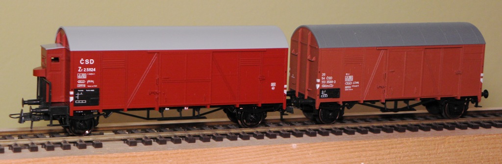 Také mi přijde, že poslední dobou veškeré "hnědé" modely nákladních vozů ČSD, ČD od Roca jsou příliš červené. V období IV.epochy se tyto nákladní vozy posílaly na revize do ŽOS Trnava, které používaly (a v 80.letech obzvlášť) barvu spíš světlejší, oranžovohnědou, skoro suříkovou, tedy nikoli červenou. Od vzniku ČD, ŽSR proto vozy slovenské jsou stále na první pohled světlejší, méně hnědé, lehce s kapkou oranžové. Vozy české se začaly posílat do dílen v Ostravě, Lounech či Děčíně, které každá měla svůj odstín hnědé. Někdy i s náznakem červené (snad Louny?), někdy spíše tmavohnědé (snad Děčín?), musel bych dohledat z fotografií z té doby. Ale vpodstatě ty vozy byly hnědé, nikoli tak do červena, jak jsou vozy Eas kat.č. 67007 a 76804. Co se týká červených vozů Roco (kat.č.66668 s šedou střechou a vozy Vtu a Zr ze setu s 365.4, vozy Utz a další), přijdou mi nereálně červené, navíc v kombinaci se světlými střechami bohužel až příliš "plastově" vyhlížející. Ano, některé typy vozů byly v 60.letech v laku do červena. Domnívám se však, že se jednalo pouze o tovární lak, který cca po 3 (nebo 4?) letech zmizel pod novým lakem provedeným v ŽOS. Takto červené jsou známé z fotografií z brněnských strojírenských veletrhů a z propagačních fotografií např. řady Zaz, Utz, Vte ... V letech osmdesátých nové vozy Gbgs, Gags, obdobně jako o dvacet let dříve vozy Zaz, byly přímo z vagónky v tmavém laku téměř višňové červené, zajímavé ještě tím, že kovové díly (kostra vozu, střecha) byly o něco světlejší - spíš hnědé (Zaz měly tuším např.plech. větrací otvory šedé), díly z překližky (čili plochy bočnic, kromě plech.větracích otvorů) nebyly lakované, ale potaženy barevnou fólií právě té tmavé až skoro višňové barvy. A jak jsem psal, jen do prvních dílen, čili v případě vozů Gbgs a Gags se jedná o přelom 80.a 90.let, rozhodně to není typický vzhled po většinu života. Takže úhrnem, nejsem přesvědčen, že by někdy dílny lakovaly vozy do tolik červeného laku jako je to uplatněno na těch modelech. Pro současnou barvu českých nákladních vozů mi ponejvíce sedí model vozu Sas od ČS Train.