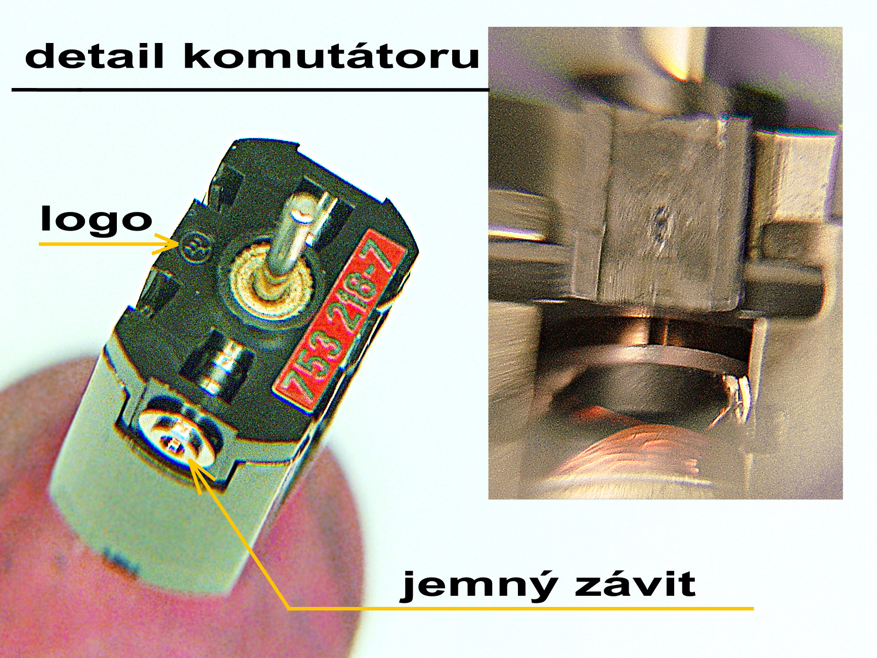 Musím přiznat, že moje původní představa o možné výměně uhlíků vzala díky miniaturním rozměrům a subtilnosti motoru za své. Ale určitá aspoň částečná možnost kontroly komutátoru a jeho případné vyčištění (např.jemným štětečkem a lihem) díky otevřené konstrukci krytu motoru připadá v úvahu i bez jeho rozebrání (které nelze doporučit, protože vrátit komutátor zpět mezi vyskočené uhlíky by nebylo právě jednoduché ).Ale životnost uhlíků a snad i komutátoru by měla být velmi pravděpodbně větší, než u motorků se sběrnými plíšky.