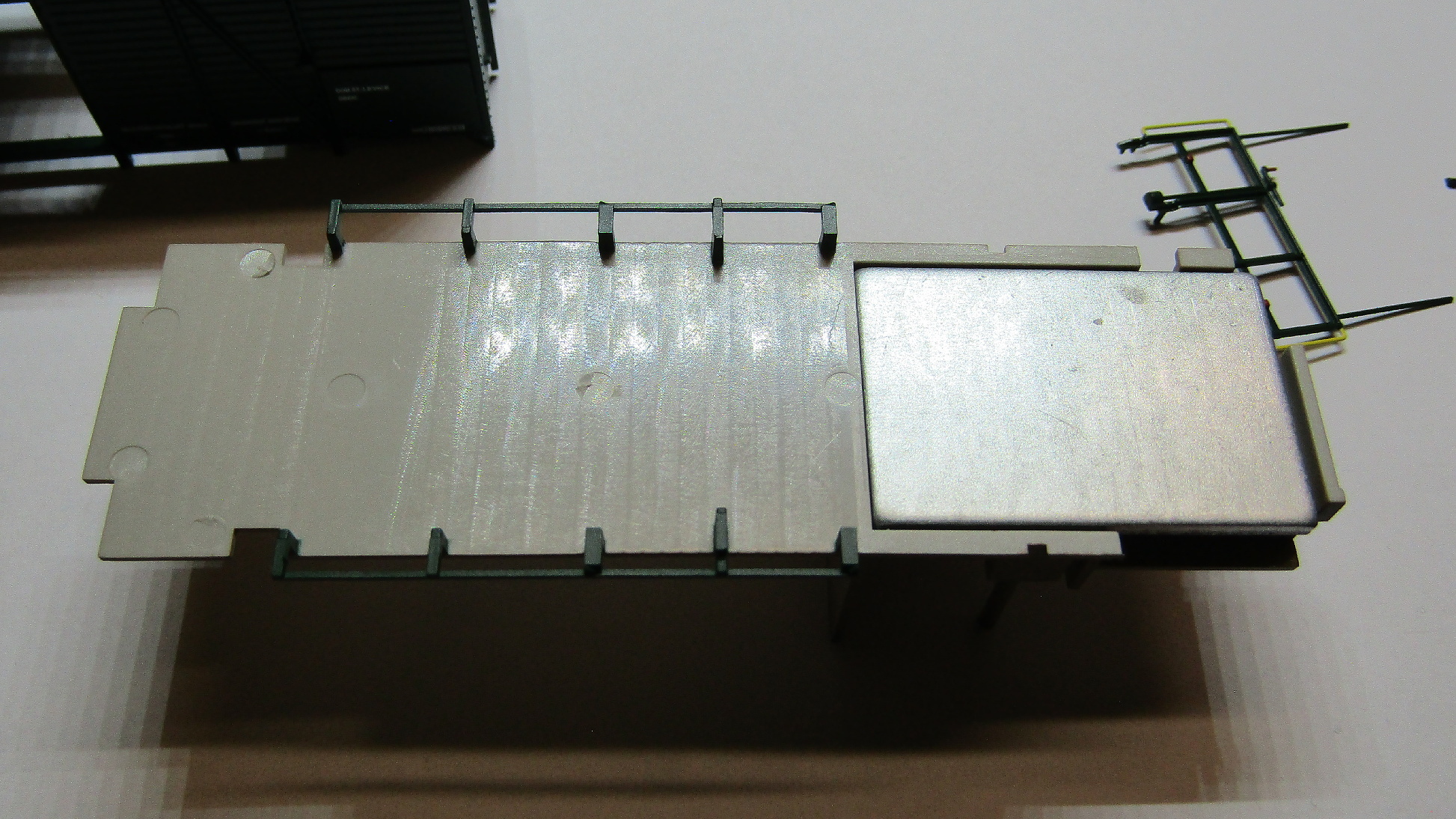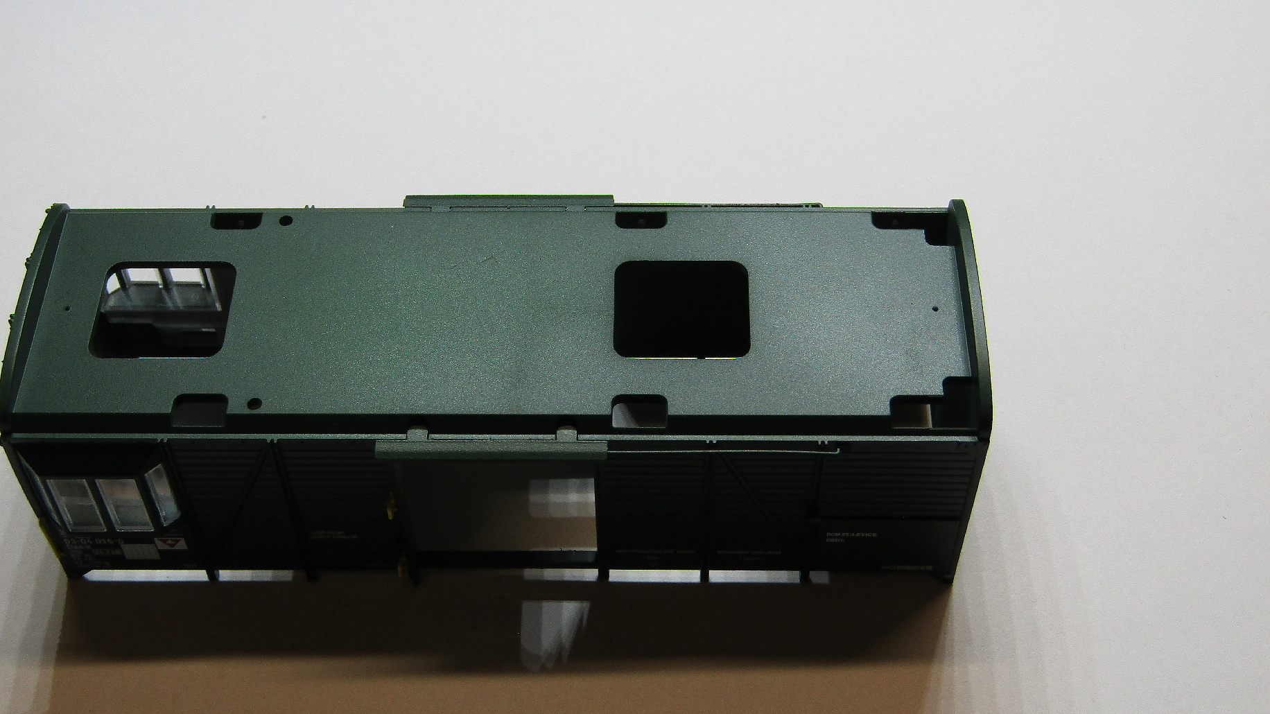 Roco 6200177 Daa-k ZSSK Cargo má jen záchodové okno a na koncích je v dolní polovině skříň hladká. Je to jen něčím přelepené a pod tím je povrch znázorňující dřevěnou stěnu? Případně zdali to někdo zkoušel odlepit?