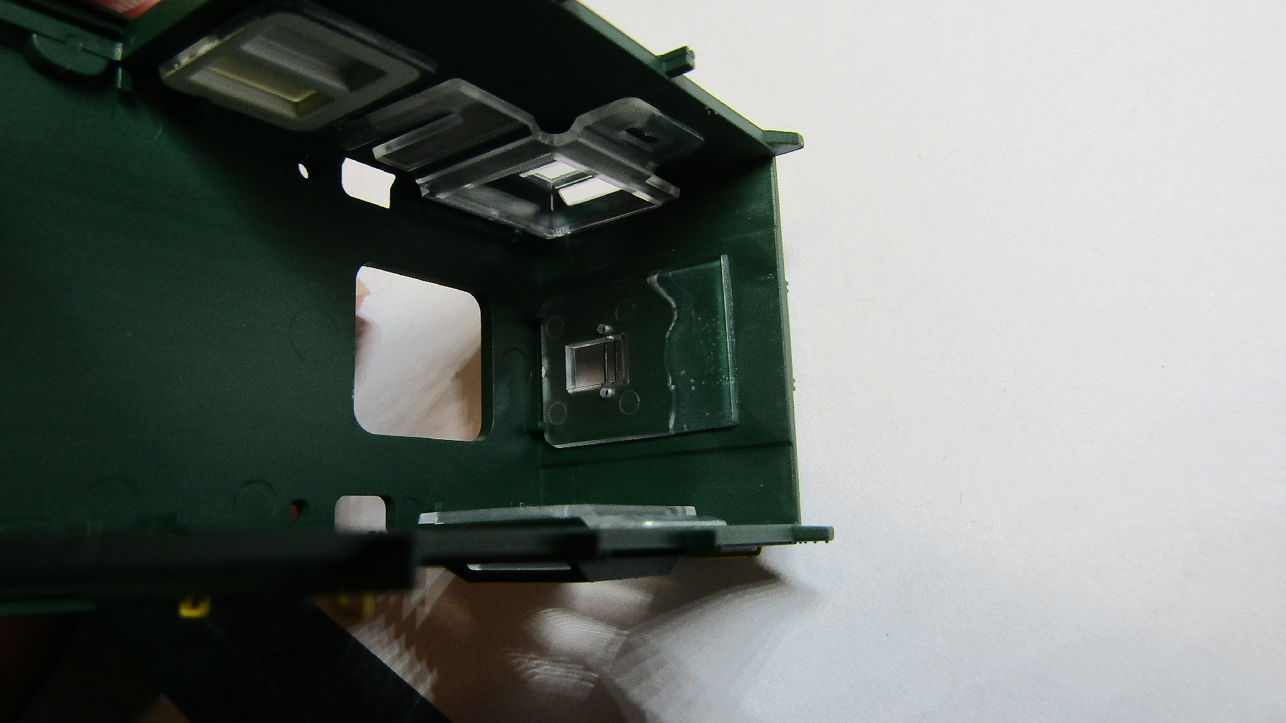 Okna jsou lepená zevnitř, takže kdo by chtěl model přestříkat, bude mít problém.