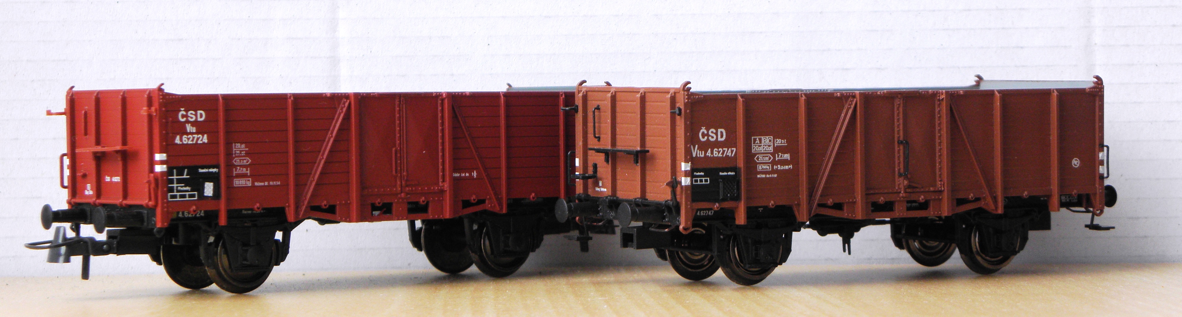 - "pivák" je blbost, ale chtějí to. Vtu vz. Vut. Označení u vozu s plošinou je upraveno. Provozní číslo je autentické - patrně druhé obsazení po zrušeném voze. Parostroj nabízí čísla podobná. Odkud jsou? Vůz s plošinkou tedy bude starší provedení Vut s převozní značkou, vůz bez a nebržděný, který je taky hotový, ale není ještě v katalogu je Vut a RIV.