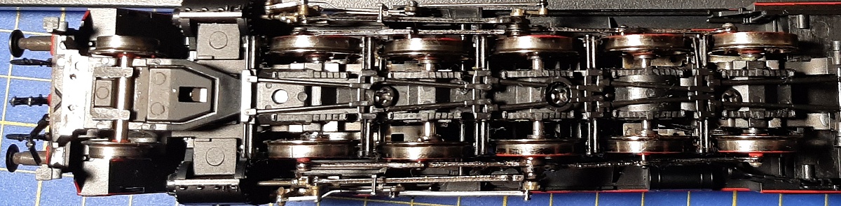 Chápu, že většina dnešních modelářů nikdy nečetla nic o parních lokomotivách, ale přesto je to jen jednoduchá geometrie. Přesně toto by bylo nejhorší možné řešení. Vznikl by totiž dlouhý pevný rozvor a vůle středních náprav by musela být dvojnásobná proti řešení, kdy jsou posuvné všechny. Když už konstruktér potřebuje pevnou osu/osy (třeba kvůli pohonu), tak by bylo lepší zvolit střední na pevno a krajní posuvné. Protože je hnaná jen jediná náprava a musí to být ta zadní, tak vlastně ani jiné řešení než posuvné všechny. Je nutné mít na paměti, že potřebné vůle (stranové posuny) náprav nazávisí na minimálním poloměru lineárně. Mimochodem třeba Karl Gölsdorf svoje slavné pětikoláky vyřešil tak, že z pěti náprav udělal pevnými pouze 2. a 4. a zbylým dal boční posuv.