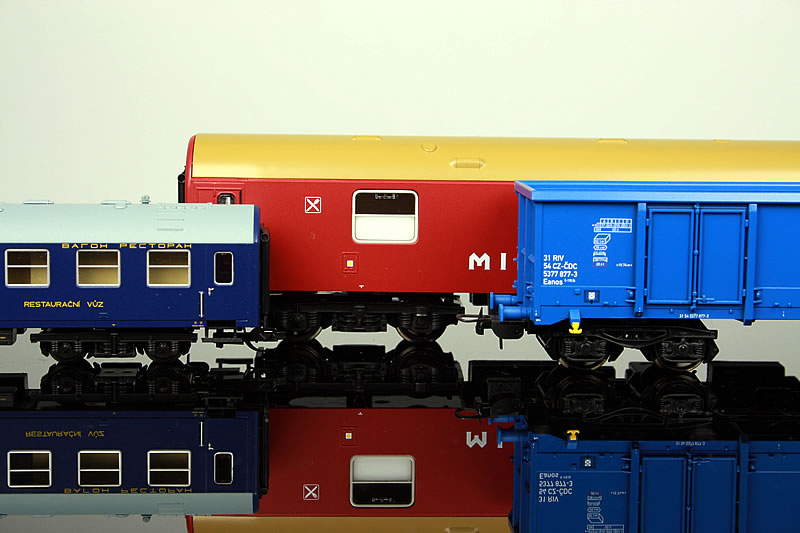 Odstín je prozatím ten jako u verze TT. V reálu u tohoto modelu TT odstín není takhle jedovatý a vypadá lépe. Nicméně odstín kolegy z Parostroje bude asi vhodnější a v reálu bude model taky určitě tmavší. Ten co je u vozů WLAB je zase moc vybledlý. Je ještě čas to změnit. Přijde mi v příštím týdnu verze Mitropa, zkusím podvozky a vyndám vozy od Tilliga z krabic jestli něco v podobném odstínu dělají a ta barva se doladí.......