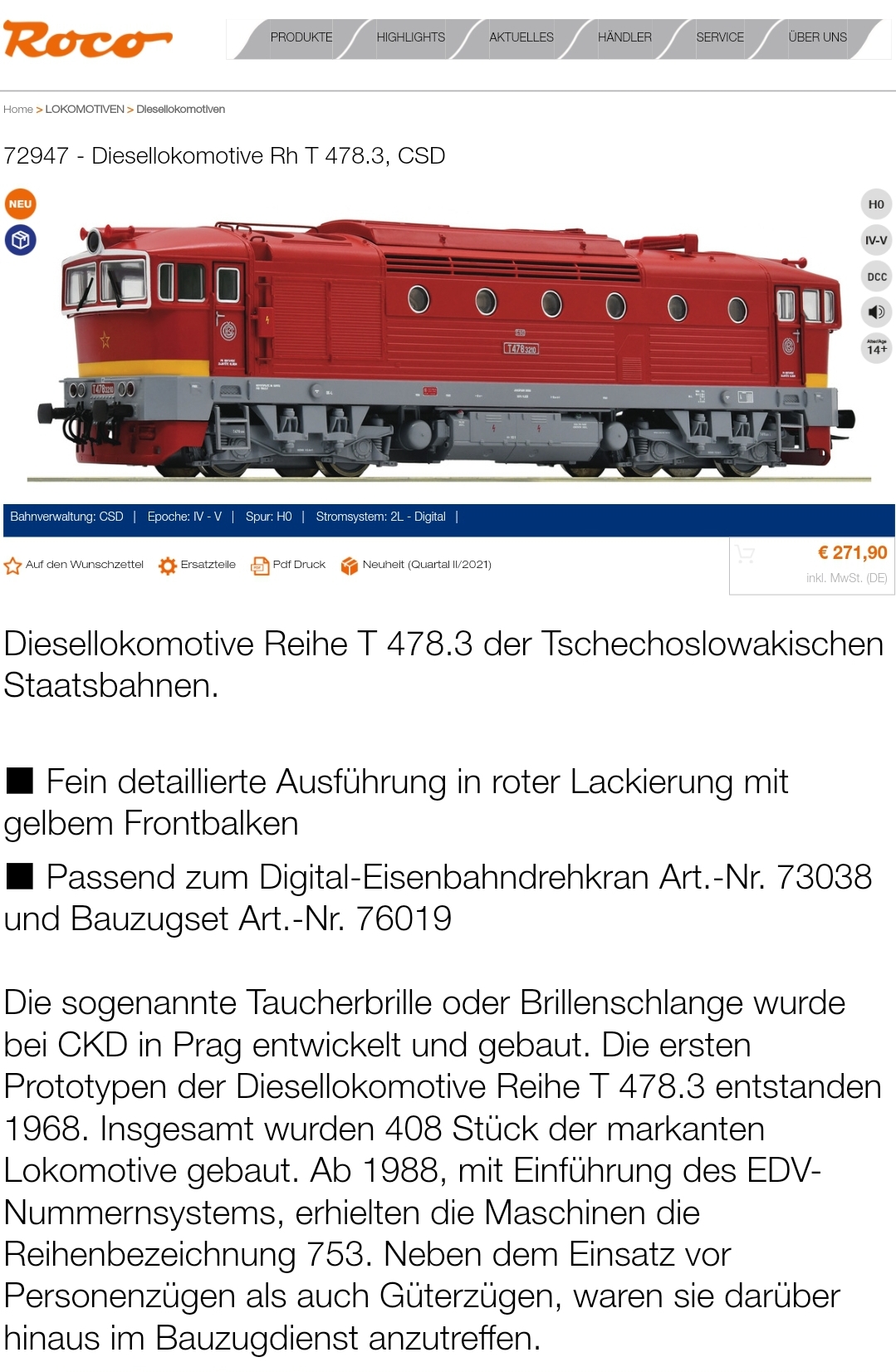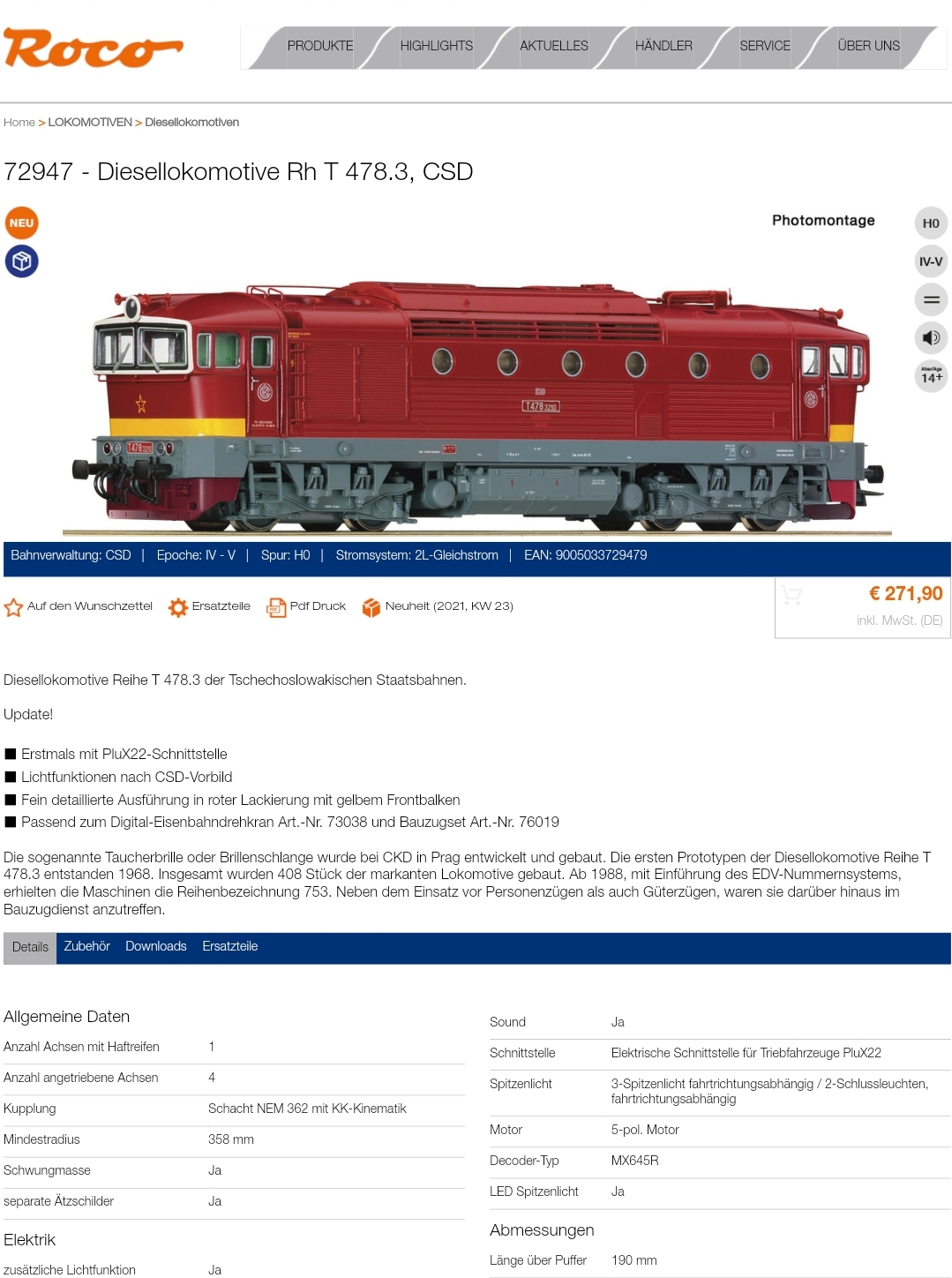 look23 píše:Není to spíše tím, že než se Roco rozhoupe, zveřejní budoucí verzi, tak za tu dobu tu MTB naseká 5 různých derivátů a předběhne Roco? Kdo chce model, tak si koupí Roco a kdo chce hračku, tak si koupí MTB, protože ta je dříve a nejlépe má na výběr z 10 verzí.
