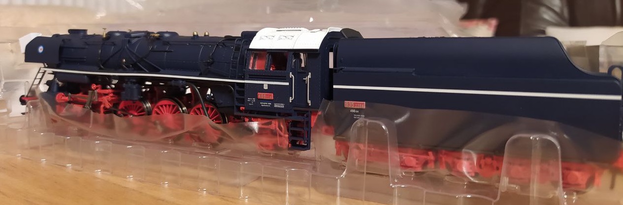 Rovné. Pozor na perspektivu, protože ochoz lokomotivy se směrem k budce rozšiřuje a bílá linka na boku bude z podhledu křivá.