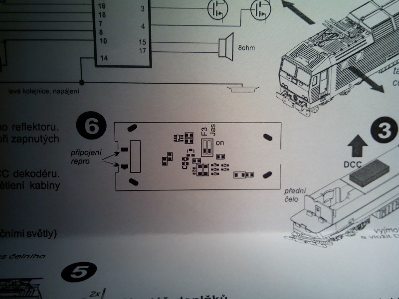 Na tišťáku lokomotivy by měly být pájecí plošky pro přiletování drátů k repráku; mělo by to být popsáno i v návodu :) .