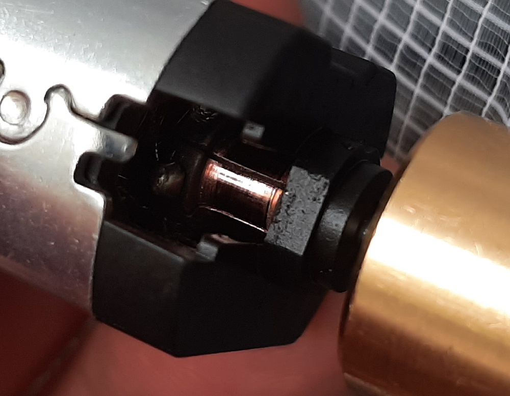 Vyřazený motorek z vrtačky, vysavače, dynama z auta nebo jiné stejnosměrné el. motorky, Měkkost zkusmo pilníkem. Nejhorší náhradní z čínské vrtačky, měkký z nějakého hodně lamelového el. m. z voj techniky.