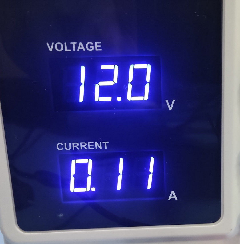 Pro jistotu jsem kolejový ovál napájel laboratorním zdrojem s plynule nastavitelným ss napětím a s displejem ampérmetru pro průběžné kontrolní sledování aktuálně odebíraného proudu (a s aktivovanou proudovou pojistkou uživatelsky nastavenou na 1 A).