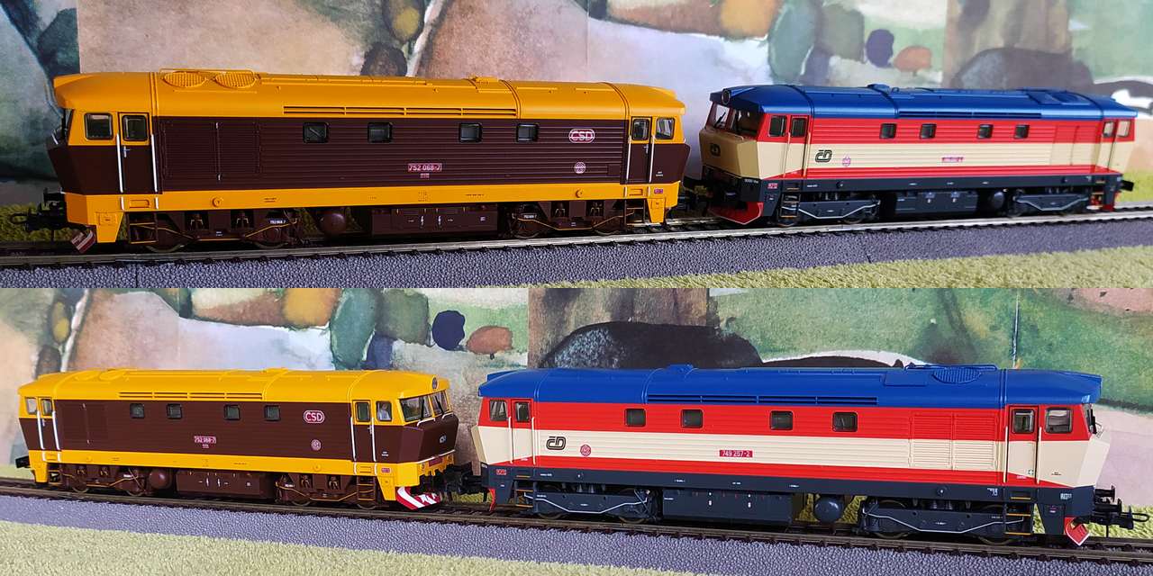 Při něm bylo využito letošních slevových akcí*), kdy k té designově diskutabilní žluto-hnědé 752.068-7 ČSD (a dále ČD) Roco 7310026 byla přibrána ještě i Roco 7310008 - digitální to sestřička 749.257-2 ČD (paralelně ke stávající-loňské Roco 7300008 v analogu).