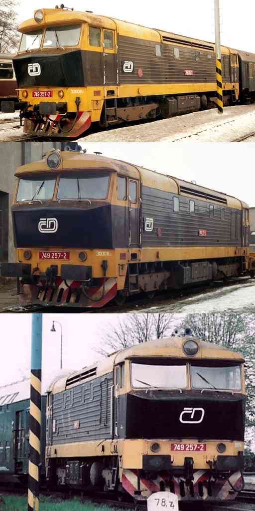 Ještě v nátěru připomínajícím původní barevnou kombinaci skříně prototypu T478.1002 byla 749.257-2 ČD zdokumentována v Šumperku 11.2.1996.