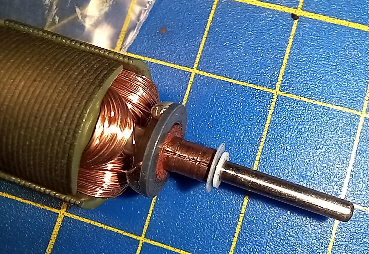 Na dalším obrázku je motorek od firmy Mabuchi ( který se - i podle mých dřívějších zkušeností ) vyznačuje plechy rotoru zalitými zeleným lakem ( jestli má rotory podobně upravené i výrobce Motraxx nerozporuju, nemám s tím žádnou osobní zkušenost ).