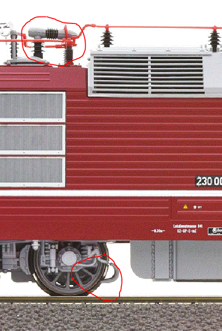 Bohužel při 50 silně a viditelně "CUKÁ". Je to ještě znatelné i při 40 a 60, ale kdybych neviděl to "pravidelné pozastavování" při 50 asi bych si toho ani nevšiml. Jinak od 0-39a od 61-100 jízda naprosto plynulá a ladná. Oproti jiným srovnatelným modelům je lokomotiva trochu celkově pomalejší. Oprýskaná bílá obruč na jenom kole na pravé straně a částečně deformovaný pantograf (naštěstí jen sběrač) také není ukazkou excelentní kvality výroby a oprýskaná bílá obruč působila při první jízdě celkem rušivě.