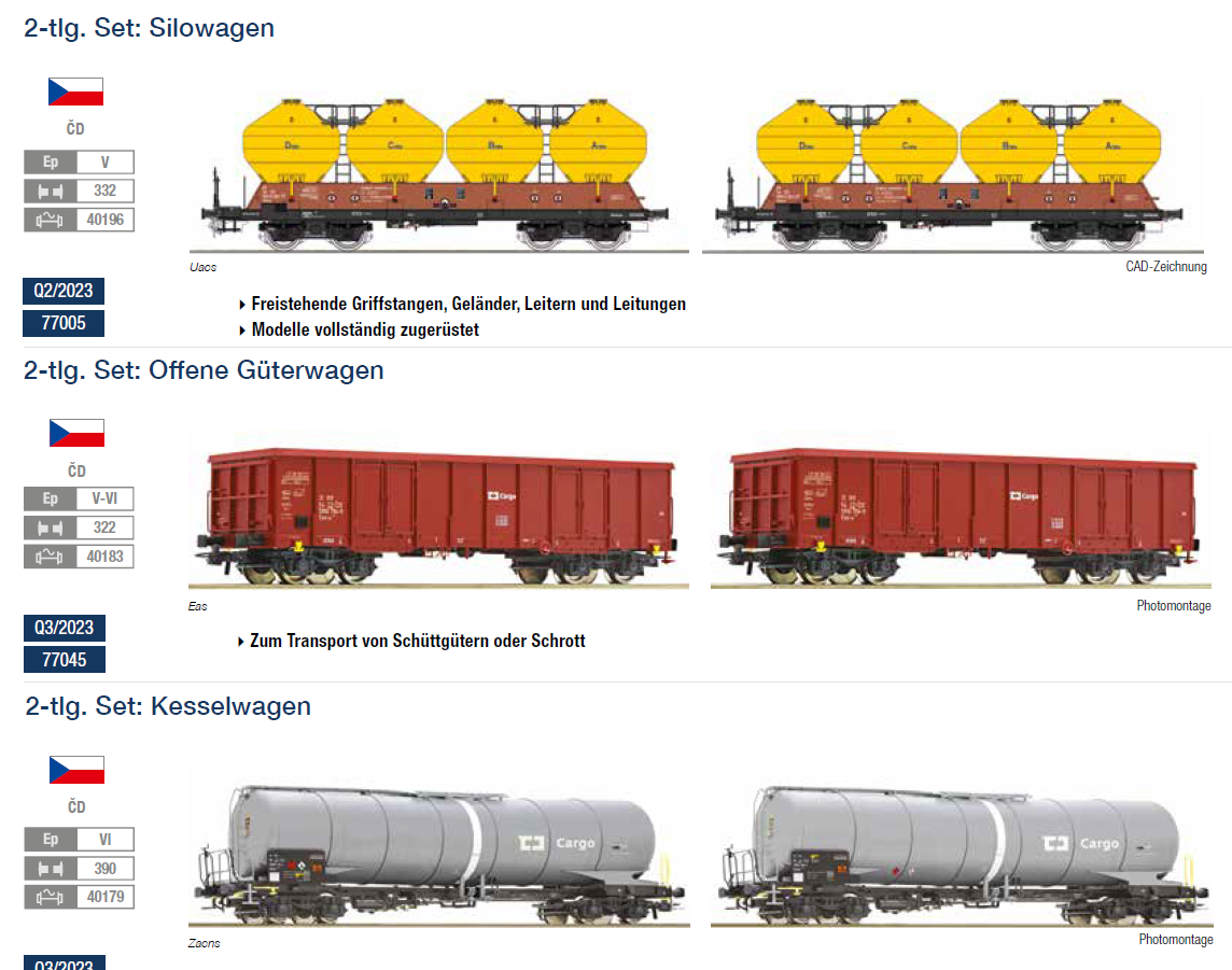 Na druhej strane obrovské mínus zasa za tie Raj-ky. IV epocha opäť len pačudesný set kde je každý vozeň iný. Ja teda neviem, či si niekto v Roco uvedomuje, že takto sa tie vozne snáď nikdy nemohli stretnúť (iný majiteľ, farebné prevedenie, ...) v jednom vlaku ? Keď už to chcú tlačiť do setu (OK, set je balený dobre a kupovať 3 ks tiež nie je problém), prečo neurobia jednoducho jedného majiteľa s rôznymi inventárnymi číslami ? Fakt by ma zaujímalo, kto to tam vymýšľa. Aj z marketingového hľadiska sa mi to zdá ako riadna blbosť, lebo určite by sa predalo viac zmysluplných setov ako tieto nezmysly ...