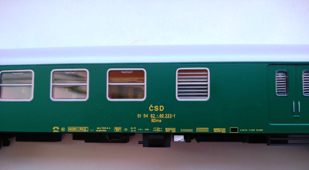 Limitovaná serie pro OK vláčky. BDms 51 54 82-40 333-1, Praha hl.n. Šedá střecha, popis na baterkách, bohužel na podvozcích už ne. Prohnutí skříně minimální......