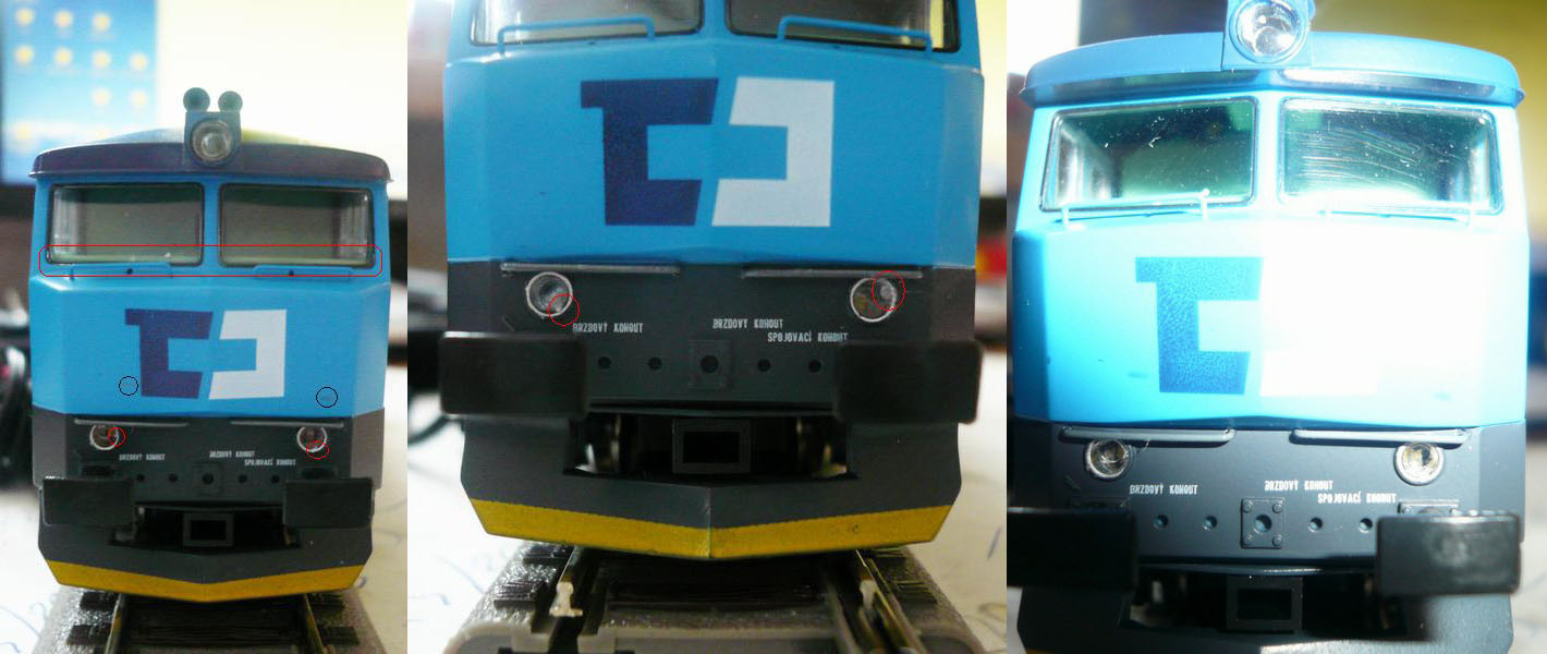 lajblt píše:V podstatě mám jen dvě drobné výtky. První je k již tady zmiňovaným typovým tabulkám, které MTB přikládá - ty jsou špatně. Ale není problém sehnat jiné (na burze hned vedle ;) ). A druhá je k osvětlení. Při vyšším napájecím napětí prosvítá střechou horní reflektor, stejně tak bílé led diody prosvítají do červených. Ale to není ani pro nezkušeného modeláře žádný problém - stačí trocha černé barvy nebo lépe tenkého černého papíru či plastu na patřičná místa.
