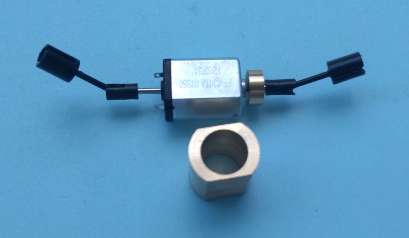 Jinak k tématu M152.0 a remotorizace. Vysoustružil/vyfrézoval jsem pouzdro pro nový motor, ale protože v zásobě jiný Maxon 1017 nemám, vložil jsem na ukázku motor z jiného projektu.