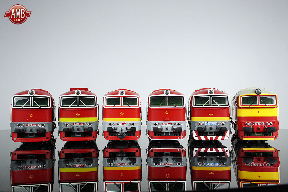 Tady je máte. Za mě je odstin ok. Už jsem viděl fotky červenějších verzí z provozu. Zleva T478.3174 (originál), T478.3174 (dostříknutý žlutý pruh), T478.3210 (nový 2021), T478.4048, 753 171-8 a 753 193-2