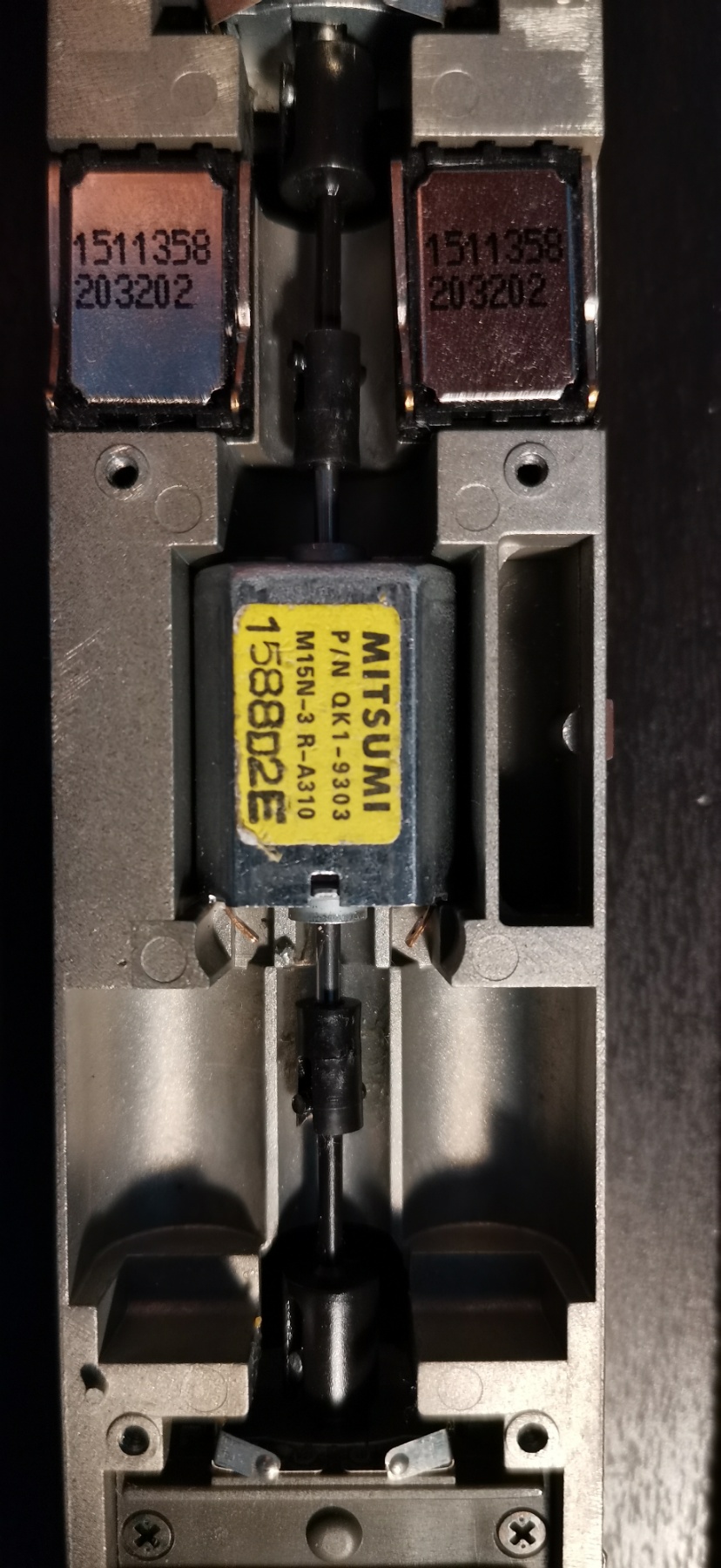 Tak jsem zkusil osadit motory Mabuchi a Mitsumi z Číny. Mabuchi hrůza, ještě horší. Mitsumi byl lepší jak originál, nicméně to pořád nebylo ono. Tak jsem nakonec skončil u původního motoru, který jsem ale doplnil kluzným ložiskem. Můj předpoklad byl, že by mohlo pohltit vibrace a tím snížit hluk. S motorem se teď konečně dá jezdit, hluk už je přijatelný. Ale pořád se to nedá srovnat s mými ostatními modely od Pika, které jsou bezhlučné.