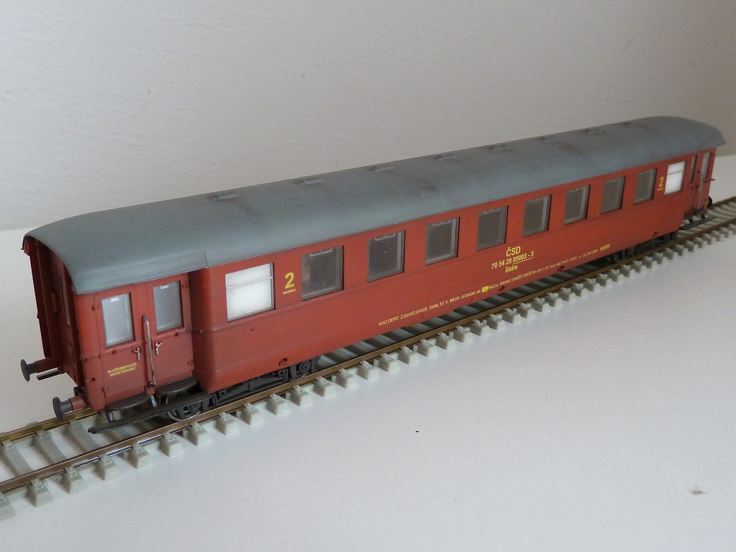 Čouďák: Foto je lehce zavádějící, to je přelakovaný vůz a popis tuším od Jardy Jirana (moc velký písmo, nesedí font, popisový chaos - tak to nevypadalo). Ten skutečnosti neodpovídá. Taky mám jeden předělaný, ale s obtiskem z Parostroje (perfektní práce Bohouše Voříška - koupil jsem ho z druhý ruky). Ten je podstatně věrnější - nese inventární číslo 003, který ten vůz měl v určitém období taky měl. Nicméně Piko bude (je) natištěný a lak lepší takže každý má na výběr jak se s tím popasuje. Zrovna včera se orig. vozy v DRB verzi dražily na e-bay a byla o ně těžká řež. Cenově vylezly pomalu na původní cenu, takže to "počítání z Česko-Slovenska" výrobcům asi moc vrásek nenadělá .-)