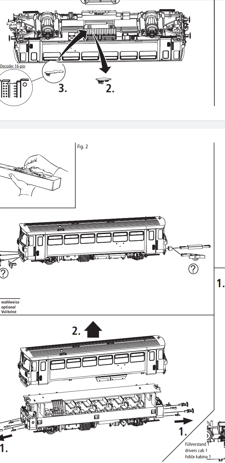 v návodu na straně 7 je jasně vidět, že motorový vůz má PluX16 dekodér uvnitř skříně a přípojný vůz dle strany 4 má dekodér Plux16 zespodu.