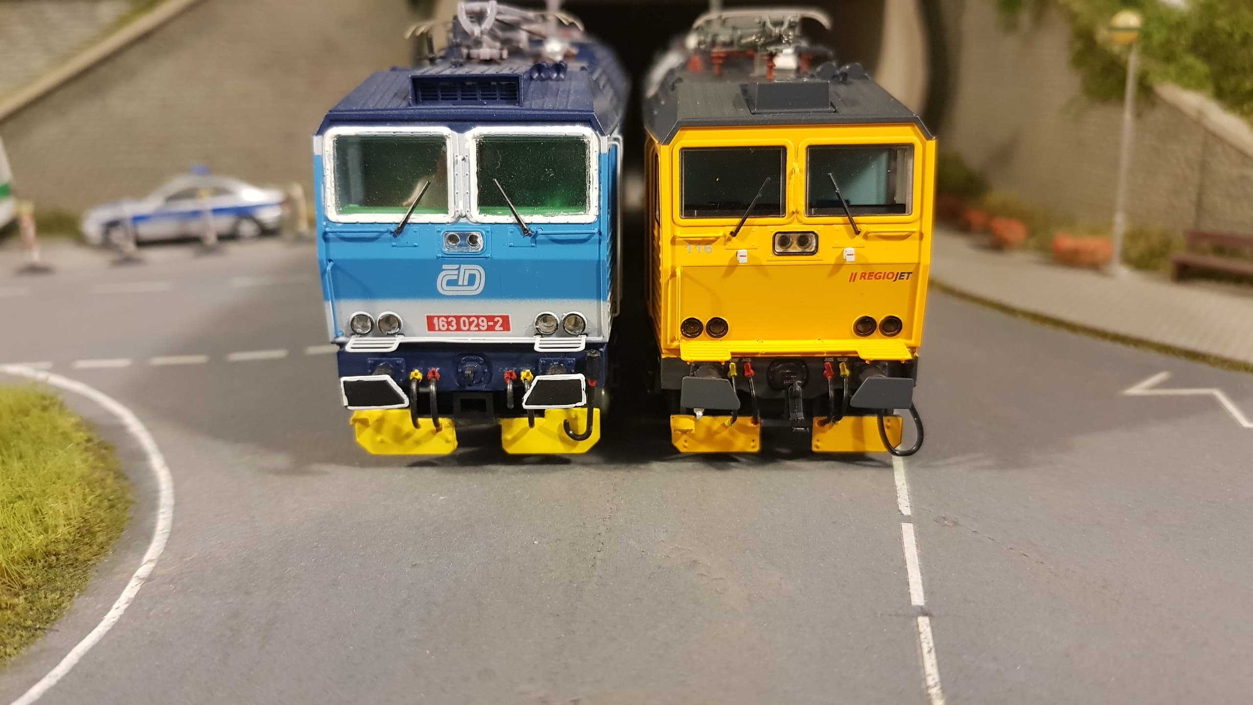 Nemusíš chodit až k brejlovci. O něco výše je srovnávací fotka čelního pohledu na 162 Regiojet ACME a 163 029 ČD od MTB.