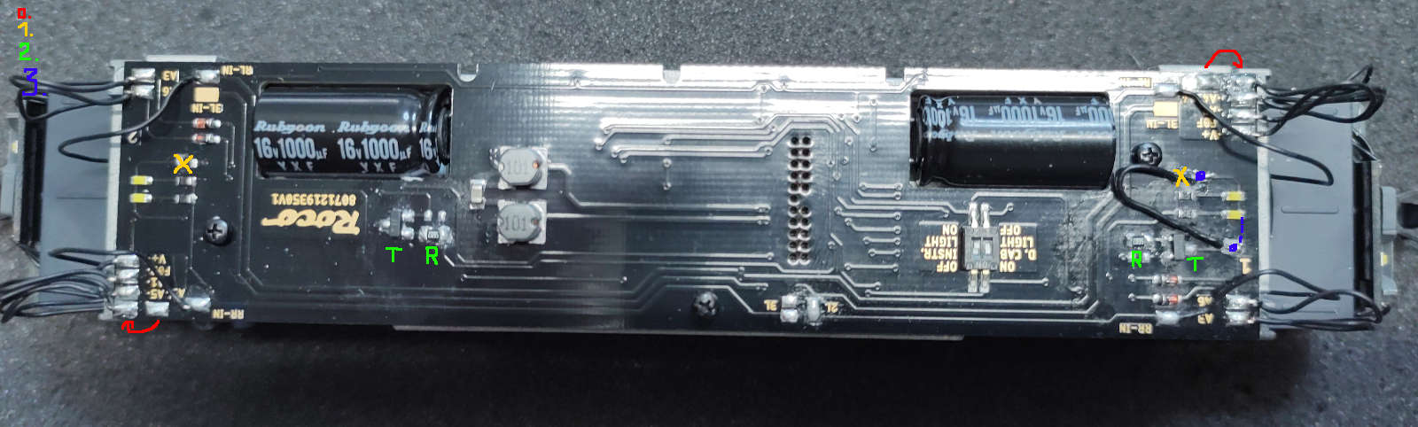 3. a tohle je kuriozita - plošný spoj Roco má na sobě chybu - na jedné straně chybí část propojky na plošném spoji a musí se tam dát drát. To je ten drát na který jsem se před časem ptal na tomto fóru k čemu tam je