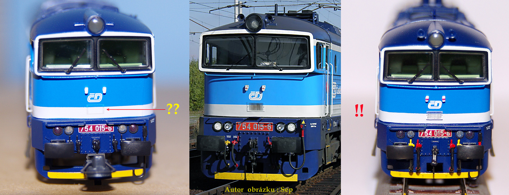 Zdravím, dnes jsem moji novou lokomotivu 754 015-6 nafotil. Tuším, že to mám stejně. Zasílám fotky v příloze. Dívám se, že mě chybí jeden stěrač. Jdu ho pohledat. Jsem nováček, ale mám dojem, že ty drobné doplňky moc na modelech nedrží a nebo se musí hned po vybalení prohlídnout a dotlačit na místa. Přibalené doplňky v krabičcejsem zatím neinstaloval.