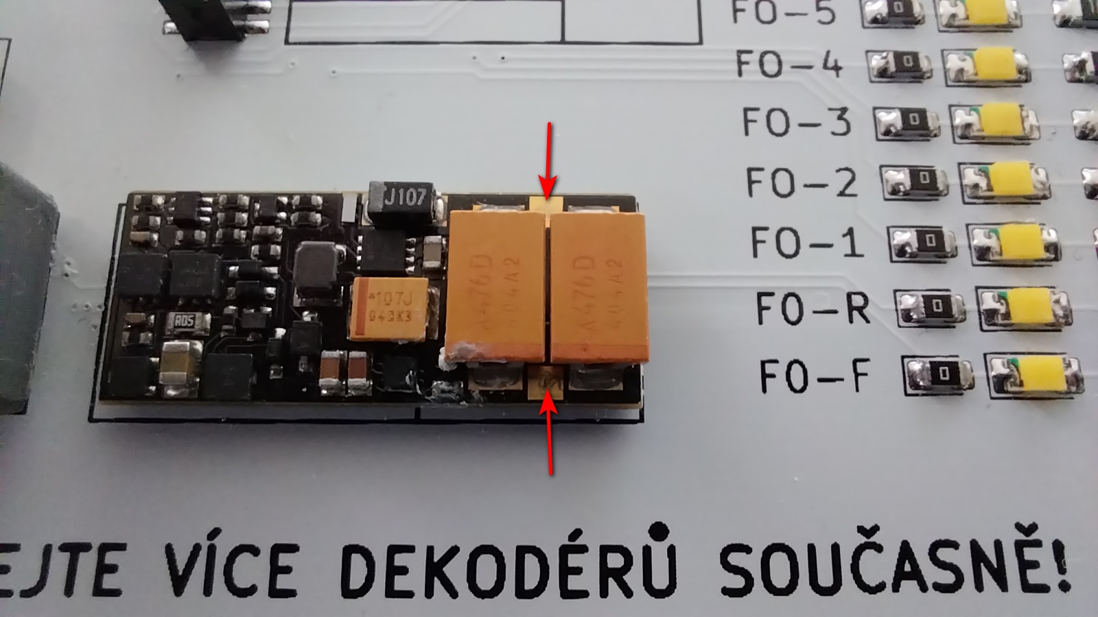 Ahoj, ohledně toho Power-packu. Abych to upřesnil, nepoužívám zapojení s klasickými elektrolytickými kondenzátory, ale moduly STACO od ZIMO. Podrobnosti najdeš na jejich webu. Tento moduly je vlastně měnič, který uchovává energii v "superkondenzátorech". Energie při osazení dvou Goldcaps 0,47F v sérii postačí skoro na 1 sec jízdy, což postačuje k překlenutí srdcovek i při velmi pomalé jízdě.