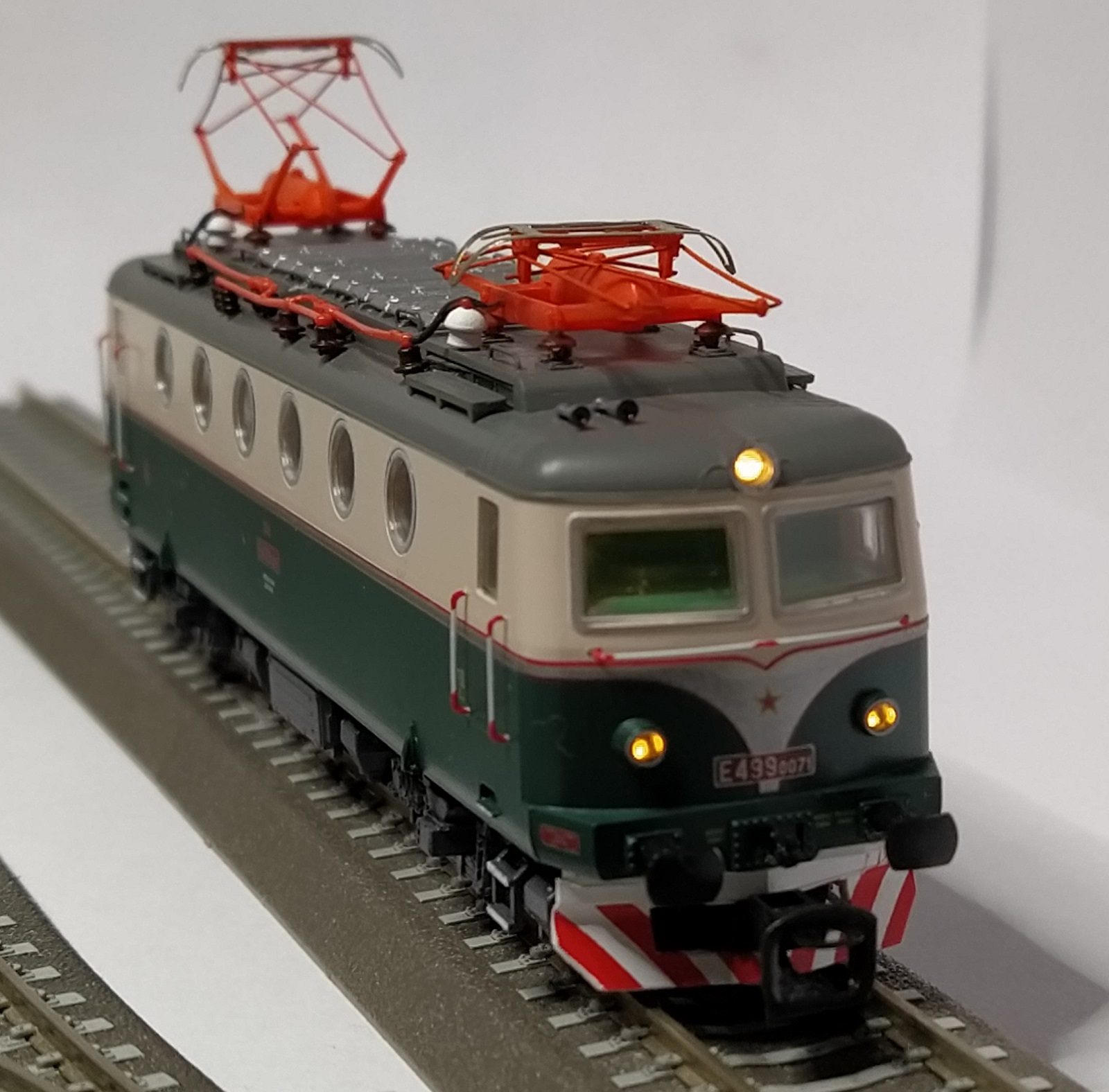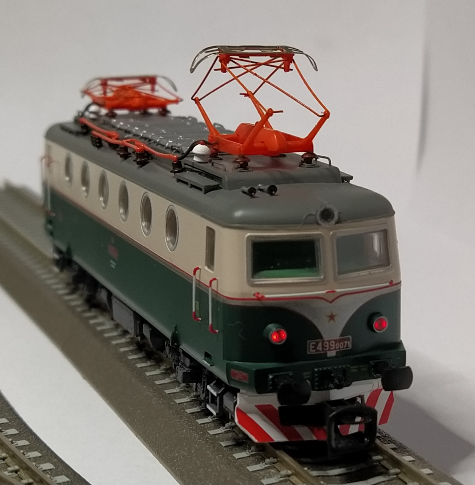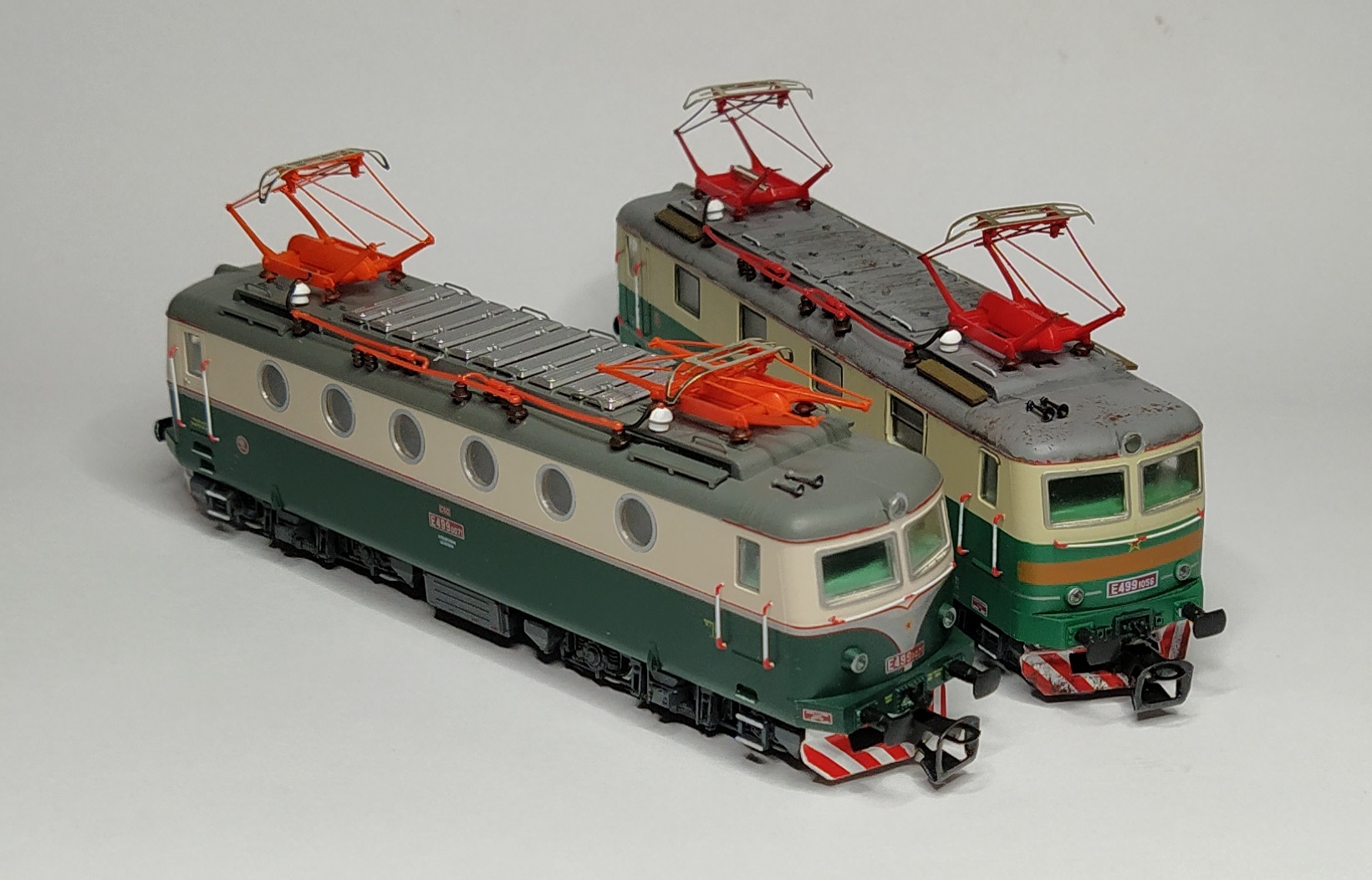 Asi mám dôvod k oslave. E 499.0 je mašina, na ktorú som sa fakt tešil. Dostal sa mi kus, ktorý ako by ani nevyrábalo MTB. Na milimeter sem, milimeter tam z hlboka kašlem. Na dnešnú dobu naozaj parádna potlač, bez akejkoľvek chyby, čitateľné popisy, ostré prechody.....lepšie by som to asi ani neurobil, aj keby som snažil jak maria. Jednoznačne kus jak má byť. No ale E 469.158 je povrchovková pohroma. Zelená ako tak v pohode, bez zastriekaných nečistôt a častíc prachu, popisy rozmazané. Znak Škoda ( ak by som nevedel, že je to on ) ani nespoznám, len červená guča. Strieborné rámy okien na čele lokomotívy na oboch stranách zastriekané/zafarbené až do skiel, úplne mimo. Jazdné vlastnosti oboch strojov sú ale výborné, takže sa s E 469 pohrám k svojej spokojnosti. E499.0 hodnotím ako výborný počin a jednoznačne jeden z najlepších modelov MTB.
