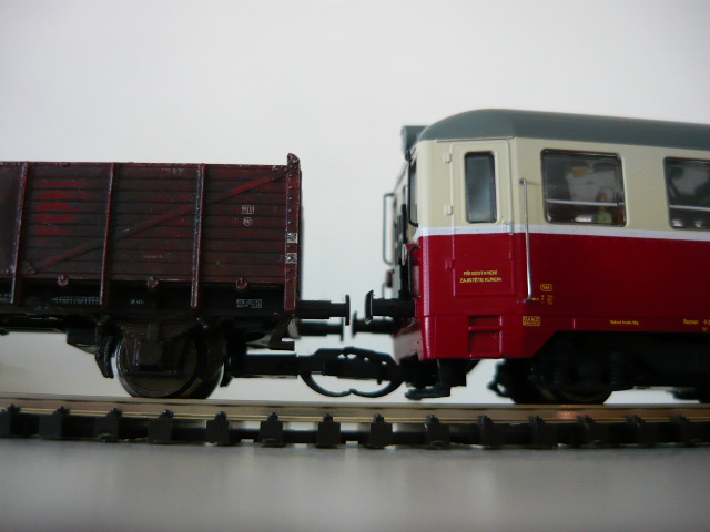 Radek Strnad píše:Já jsem si zakoupil toto: Oba pluhy jsou posazeny tak nízko, že místy škrtají o hlavy kolejnic. Zadní podvozek vykolejuje na každé druhé výhybce. Osvětlení interiéru svítí pouze při jízdě hnacím podvozkem vpřed(dekodér ZIMO MX648). Obě kinematiky jsou ohnuté směrem dolů tak, že spodní část kovového háčku spřáhla trčí mezi kolejnice. O pražce nedrhne, ale zato spolehlivě vykolejí podvozek při přejezdu výhybkového jazyka. Za 4.000,-Kč....nekup to!!!!
