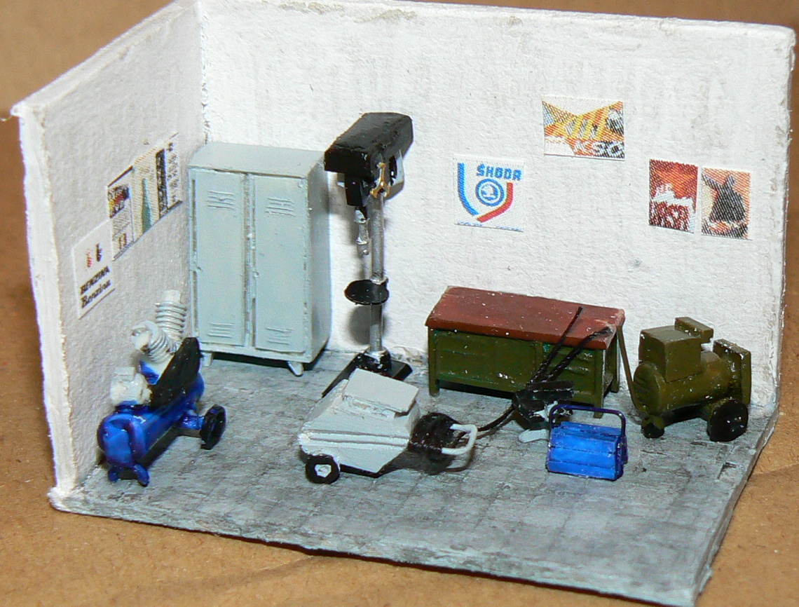 Nabízí to sestavené i jak stavebnici. Ta dílna v téčku vypadala celke pěkně i naživo.