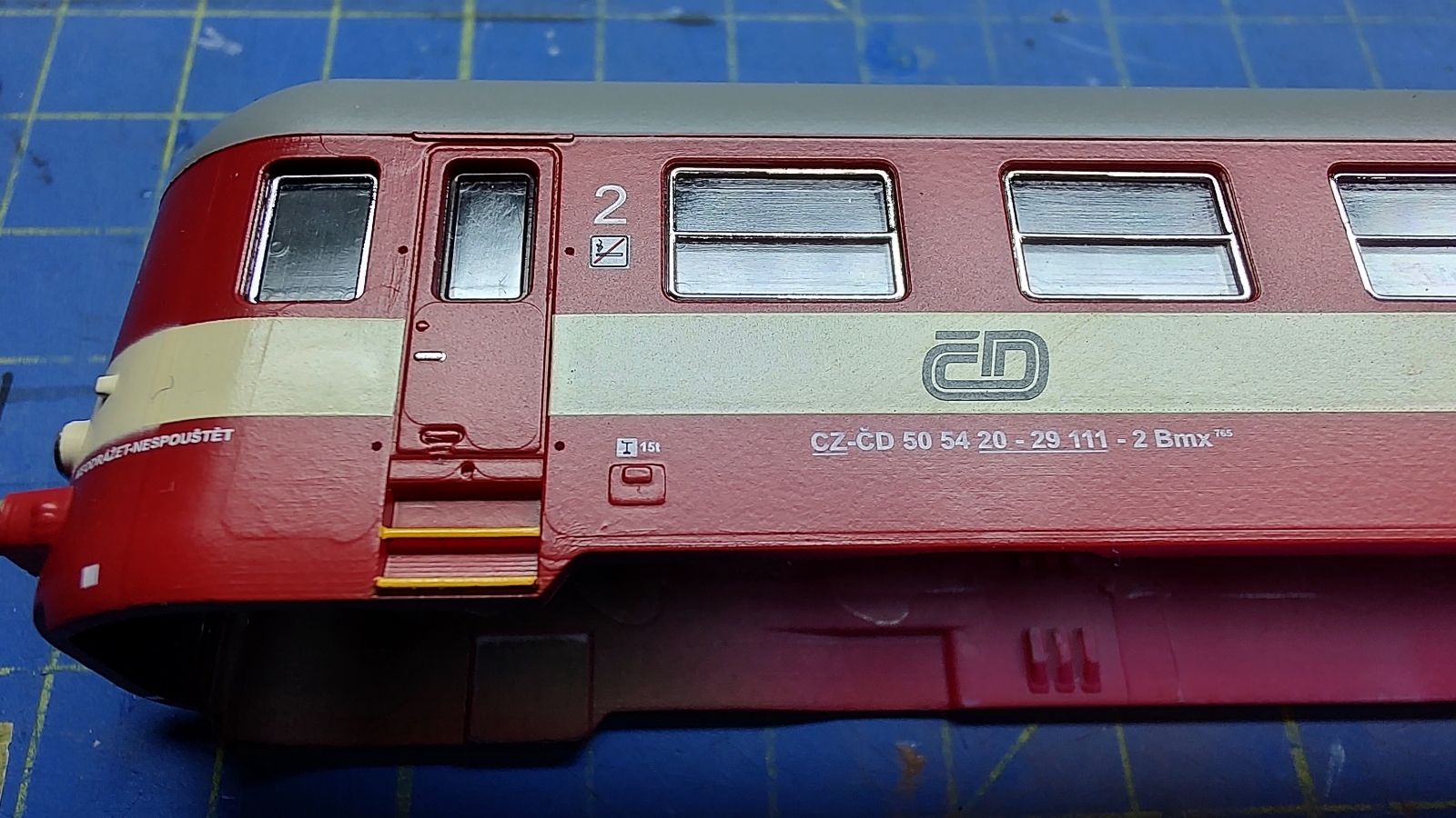 Musím se podělit o zážitky - dostal jsem přípojný vůz Bmx v nátěru ČD. Kdo mne znáte, víte, že nejsem úplně fanouškem MTB, ale bylo mi líto model neprovozovat. Rozhodl jsem se, že mu dám šanci. Zatím jen narychlo, současně jako průzkum situace před dalšími úpravami, které budou potřebné... Dárce odpustí, nic z toho, co dále uvedu, není mířeno na něj, za model děkuji, ale spíš je to povzdech nad tím, kam až se propadla hračkářská výroba v Čechách...