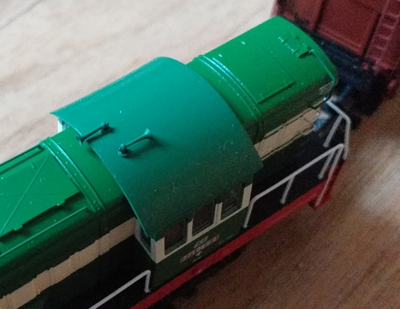 Také mi dorazil zelený Čmelák pod stromeček, ale moc radosti nedělá. Po tom co jsem ho naučil jezdit po kolejích ,řeším především to ,že mi soudruzi z MTB zapomněli nabarvit střechu budky strojvedoucího (pokud to ovšem není záměr, že je to jen v barvě plastu s trochu jiným odstínem , leskem a řadou propadlin ).Vzhledem k tomu ,že už ted jezdí velice slušně a zbytek náštřiku je bez vad ,tak se mi nechce vracet a chci si střechu dolakovat. Mám otázku, má být u tohoto stroje opravdu zelená? Fotku tohoto stroje s logem ČD na čelech jsem nikde nenašel a na starších i novějších fotkách je střecha světlá, nejspíš kremově bílá. Nemá někdo fotku, ze které MTB vycházelo (s logem ČD na čelech a zelenou střechou ),nebo je to fikce?