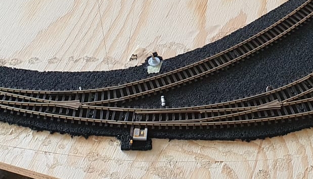 Co však doporučuji (a já to pracně dodělával až po položení a jízdních zkouškách), je vodivé propojení jazyku se sousední kolejnicí. V případě, kdy není jazyk dostatečně přitlačen, není vodivý. Vzal jsem tedy drátek a v nepohyblivé části napojil a je to ok. V zásadě to odpovídá lokopinovi, ten to ale dělil ještě na další úseky přave kvůli zkratu okolku.