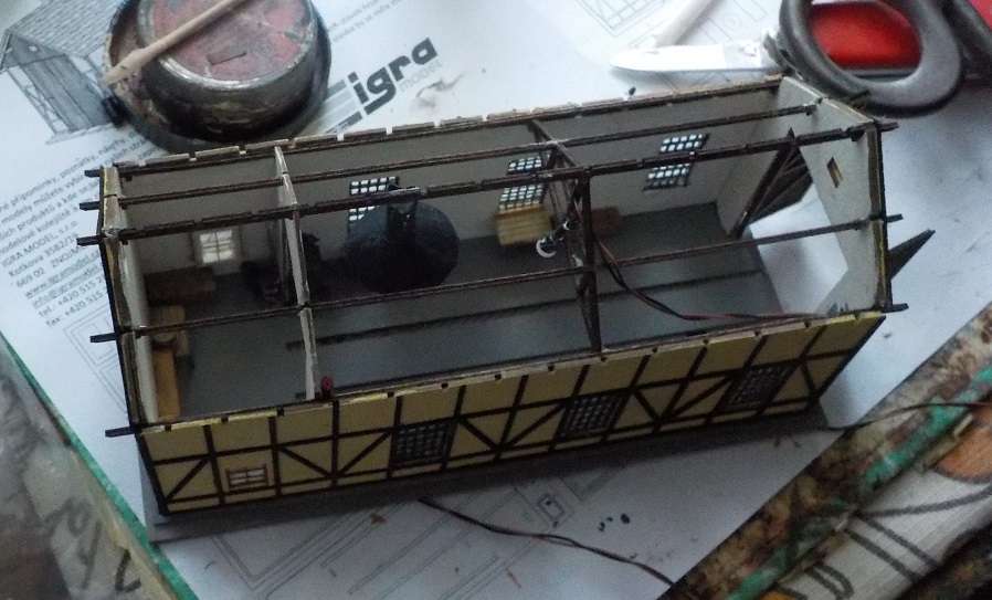 Tak jsem tu výtopnu dopráskal, naznačil nějaký ten interiér a asi ještě upravím zavěšení vrat.