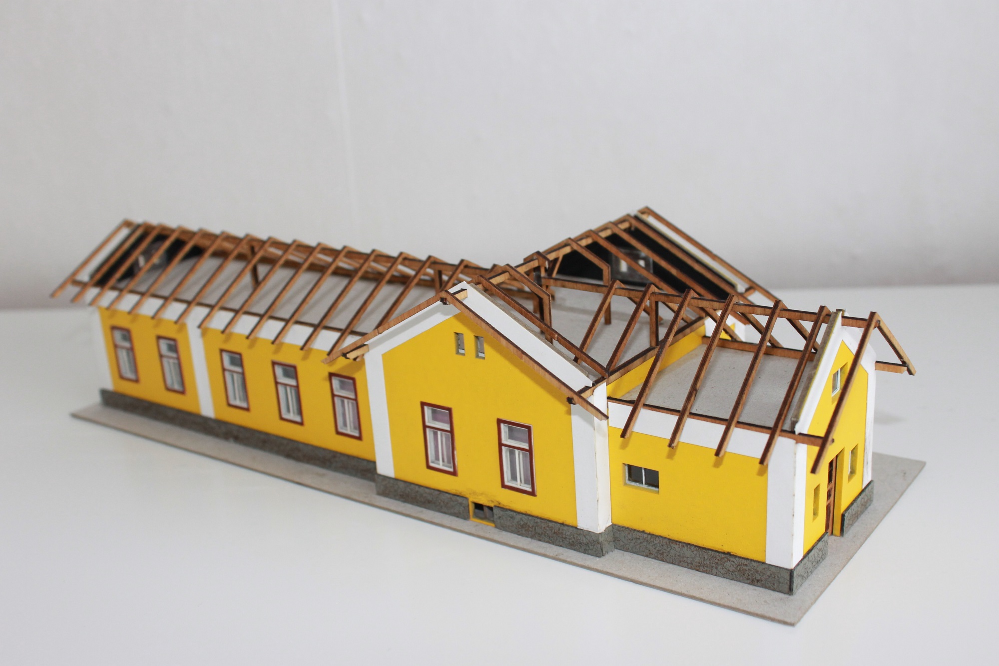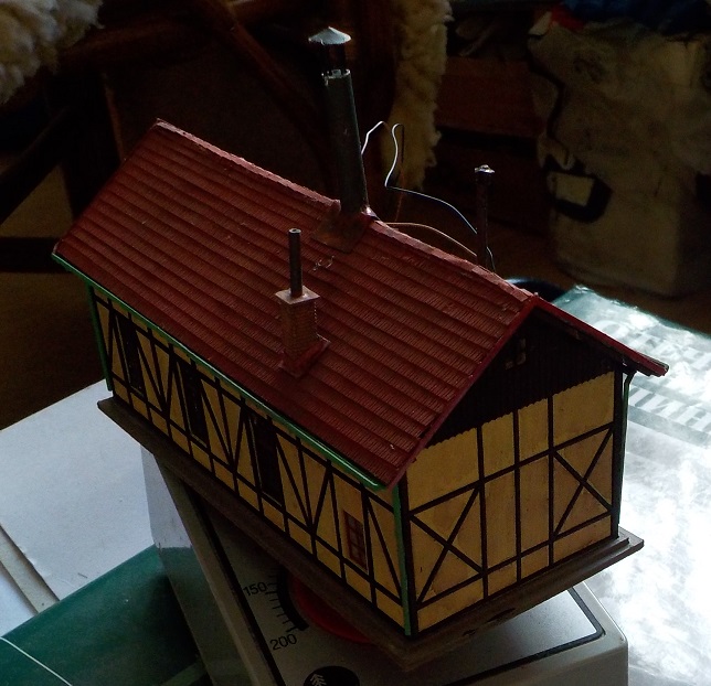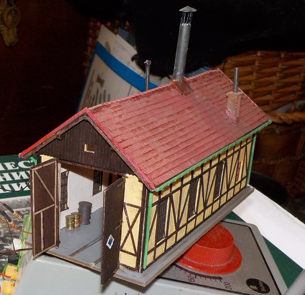 Zrovna se mrcasím s výtopnou Ybbsitz. Interiér žádný, vrata se patrně mají zavěsit na lepenkové "panty". To by nemuselo vadit, pokud budou napevno otevřená. Kanál pro údržbu je nabízen jako samostatný doplněk. Stěny jsou čtyřvrstvý sendvič - vnitřek, zasklení oken, vnějšek a hrázdění/obložení štítů. Konstrukce střechy je standard, nereflektuje na ventilační komín. Takže po slepení se pro něj buď vyvrtá otvor skrz hřeben, nebo se udělá dělený a při stavbě se nejprve napasuje dovnitř vnitřní díl a po slepení střechy dolepí vnější díl. Stavba mi vázne na interiéru - vraty bude dovnitř hezky vidět,takže musím nakašírovat alespoň základní výbavu (kamna, výheň, ponk, nějakou tu almaru).