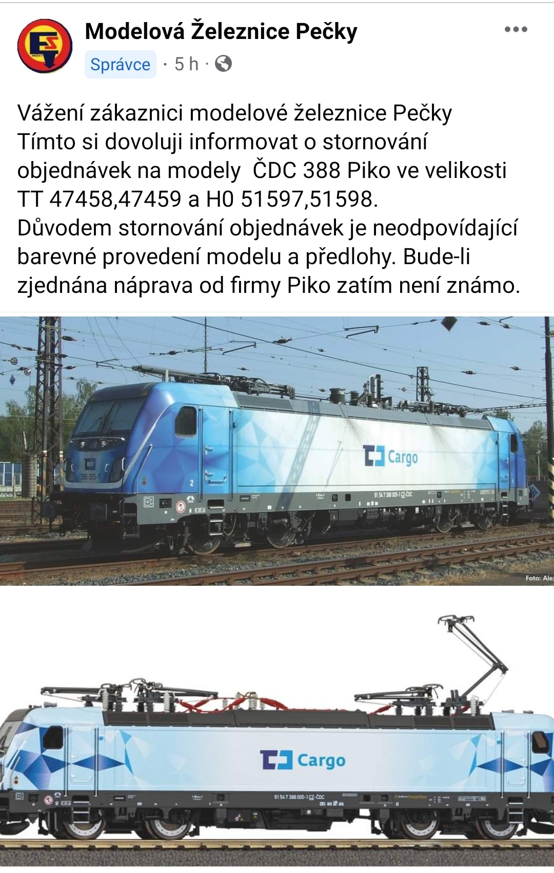 vyjádření ES Pečky na F.B. ohledně modelu 388 005 od PIKO.....