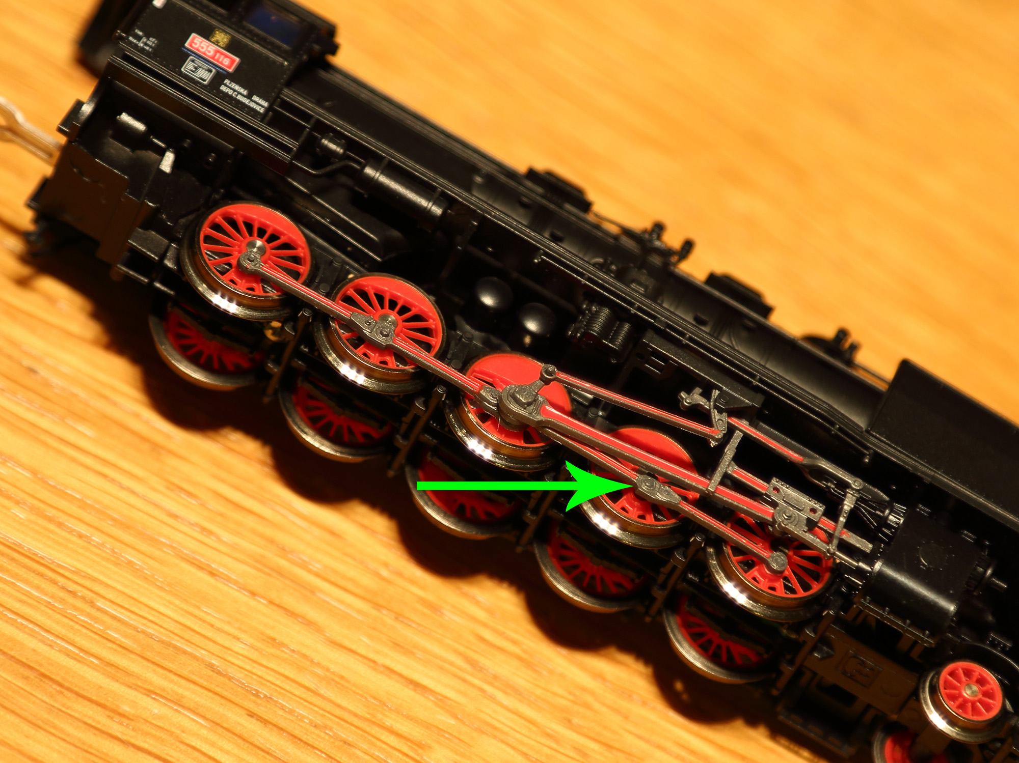 Tomuhle problému jsem se chtěl vyhnout a proto jsem to hned řešil. Měl jsem několik lokomotiv z různých důvodů, kterými jsem problémy, které nemusí být vidět testoval a jedna z nich byla i 555.1 (pokud se mi to nezdálo, vytáhl jsem další, aby si potvrdil, zda to dělá i druhá) - také byla pak bezva zaprášená od toho všeho pokládání, řezání, broušení, upravování..., až to bylo hezky viladěno, pak jsem ji celou umyl s částečným rozebráním a dnes již je připravená na klasické ježdění. Může se namítnout, že udělat si z tohoto modelu pokusnou lokomotivu, není zrovna běžný přístup, ale vyplatilo se mi to, ikdyž mi to trochu vadilo.