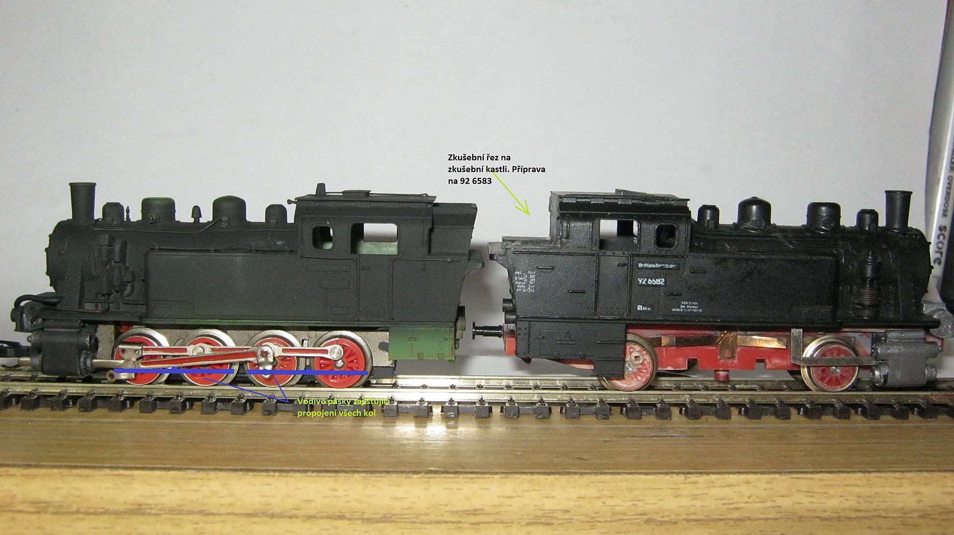 Zároveň jsem se rozhodl pro přestavbu kastlí na ,,95,,(92 6583) a ,,91,,(92 6480) . Kdo by této výzvě odolal. A tak mám tedy co dělat alespoň do příštích vánoc. A jen tak mimochodem, po odřezání nástavby tendru, po jeho zkrácení, moc místa na uhlí nezbyde. Počítám pár metráků. To asi neměla moc velkou spotřebu ? Tunu na sto ? :)