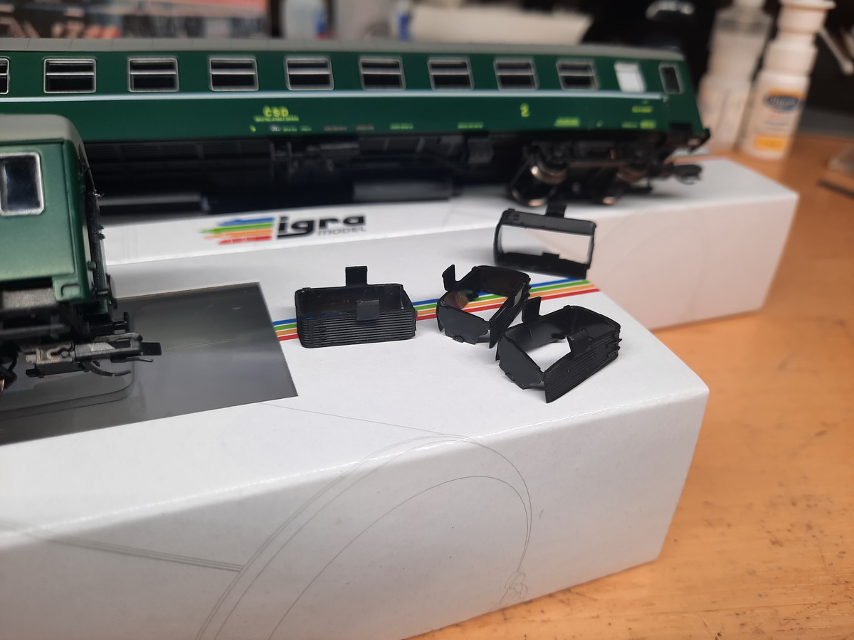 Adam Buchal píše:Pavel Čáp píše:Chtěl jsem všechny mé vozy vrátit, nakonec jsem tak ale neučinil a bastlil. Osvětlení neřeším, to bych musel osvětlovat všechny vozy, co mám a do toho se mi nijak nechce. Takže jsem podvozky rozebral, vzal vrtáček, navrtal důlky a vložil ložiska PEHO a původní dvojkolí nahradil novými, jednostranně izolovanými na kovové osičce, tedy s přesně dodrženou její délkou. U dvou podvozků jsem ale navrtal nepatrně hlouběji než je třeba a dvojkolí má lehce, opravdu jen lehce větší vůli, tak pro změnu drhnou okolky o podlahu vozu. Takže ještě bude muset přijít ke slovu frézka a krapičátko vybrousím podlahu vozu. Dají se ty vozy naučit jezdit, ale je to voser, u modelu za jedenapůl litru si představuji výrazně vyšší kvalitu a výrazně nižší potřebu vlastní domácí práce, abych to naučil jezdit.
