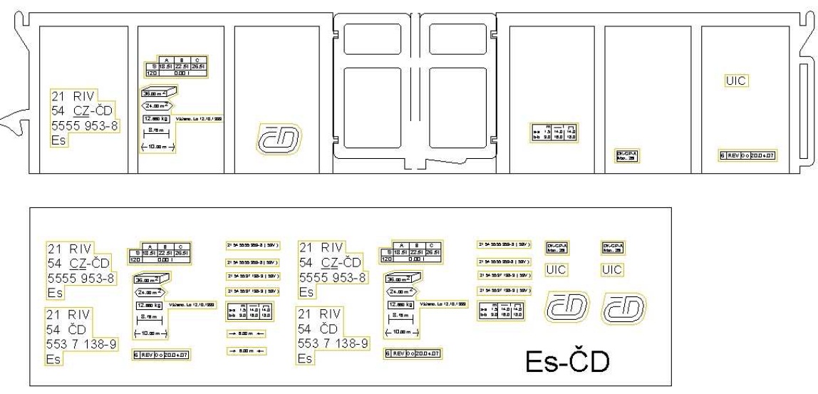Zdravím pánové, dostal jsem email od MŽ s návrhem jak by mohly vypadat obrázek obtisků, originál je v pdf lze ho zvětšit nebo zmenšit a stále je čitelný, to zde vložit nejde takže alespoň jpg pro názornou ukázku. Barevné schéma přiměřeně odpovídá reálnému provedení, barva pozadí je zhruba odstín barvy vozu a barva písma odpovídá barvě písma na obtisku, Příklad zelený vůz a žluté obtisky zelený podklad a žluté písmo, vůz bílý písmo černé , podklad bílý písmo obtisku černé, co Vy na to kolegové? Zárověň je z náhledu patrné i rozmístění zalakovaných ploch jako na obtisku.