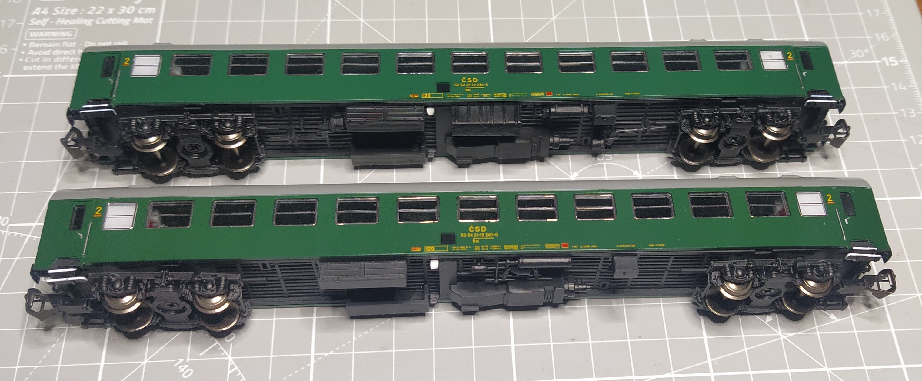 Zdravím. S jistou dávkou obav jsem si pořídil dva kousky. Podle obrázků z internetu jsem tak nějak byl smířený s nutností úprav. přesto sem byl překvapený co bylo v krabičce. Model má několik drobných vad na kráse, základní jsou podvozky.... to se nebudu vyjadřovat (patří pod úplně jiný typ vozu), návalky se mi zdály takové "dětské" a trochu neodpovídá výbava na spodku vozu. Jinak barva, popisy, všechno v pohodě, ale ty podvouky. Takže přišla na řadu tiskárna. Nové podvozky, návalky,a zkusmo bedny na spodek vozu a brzdové válce.