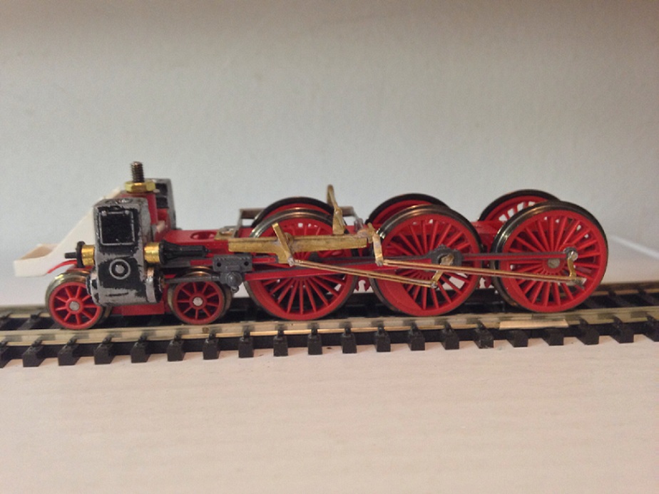 Po dlhšom čase aktuálny stav Mikáda, momentálne pracujem na pojazde loko a nových rozvodoch. Hotové sú výstredníkové tyče a protikľuky, nosič kulisy a nosič dymnice, všetko z odpadu zo stavieb iných modelov. Výstredníkovú tyč 3. valca treba ešte doladiť tak, aby mala chod ako originál. Parné valce som použil zo BR56 BTTB, lebo sa najviac podobajú na predlohu a sú upravené.